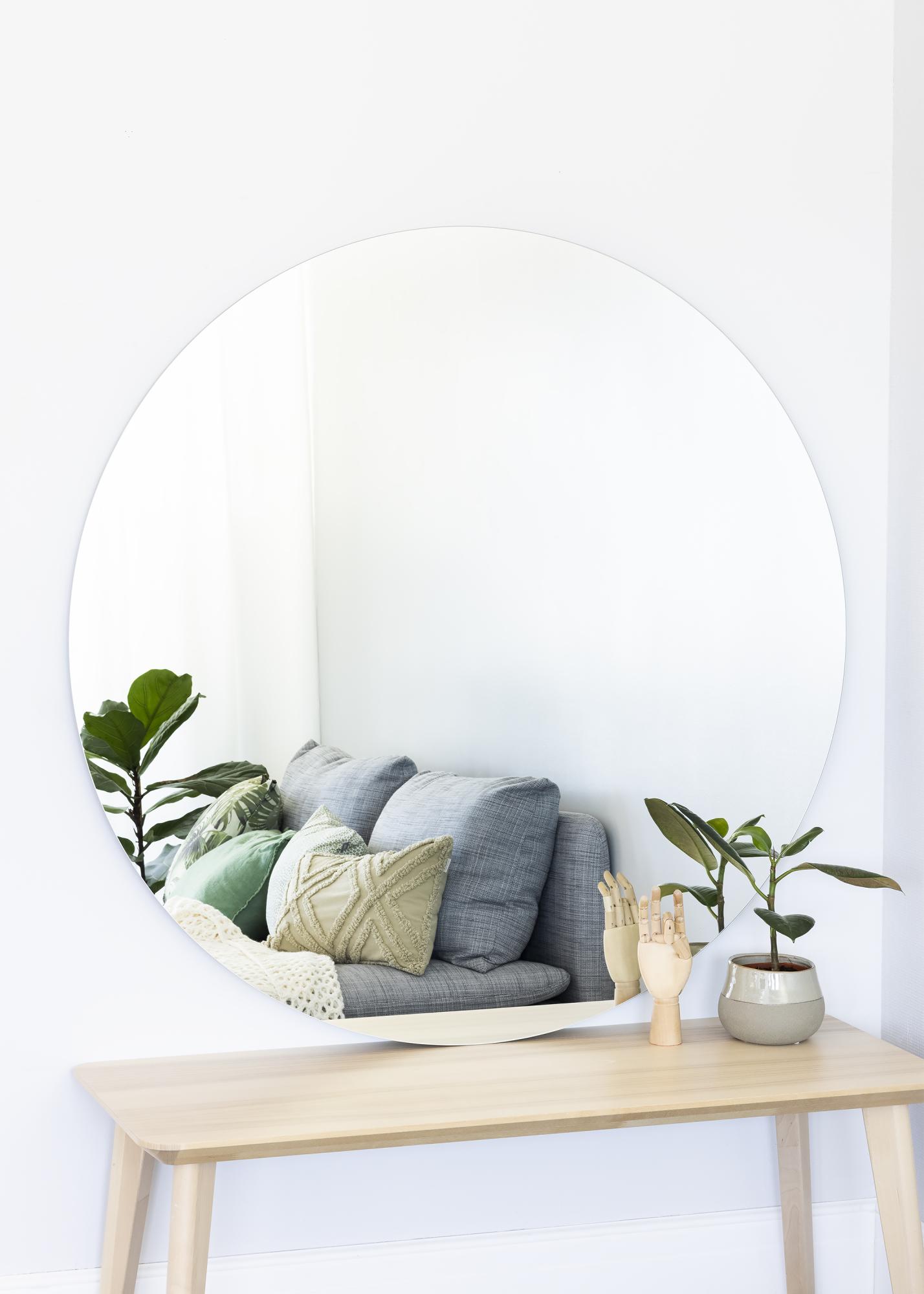 Espelho redondo de 120 cm Ø que faz parte de uma série de espelhos redondos da KAILA. Disponível em 13 tamanhos diferentes para que encontre o tamanho perfeito para o seu quarto. O espelho é extremamente fino e elegante, adequado para todos os tipos de ambientes e estilos de decoração.