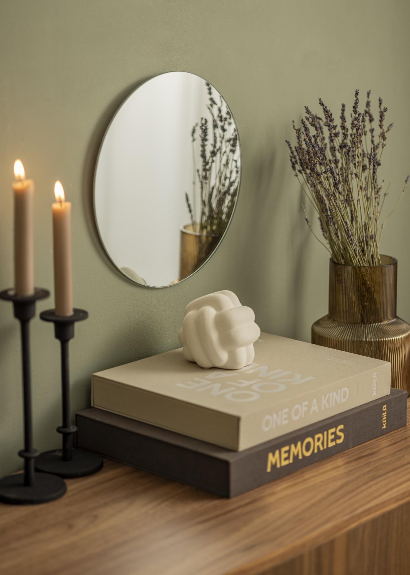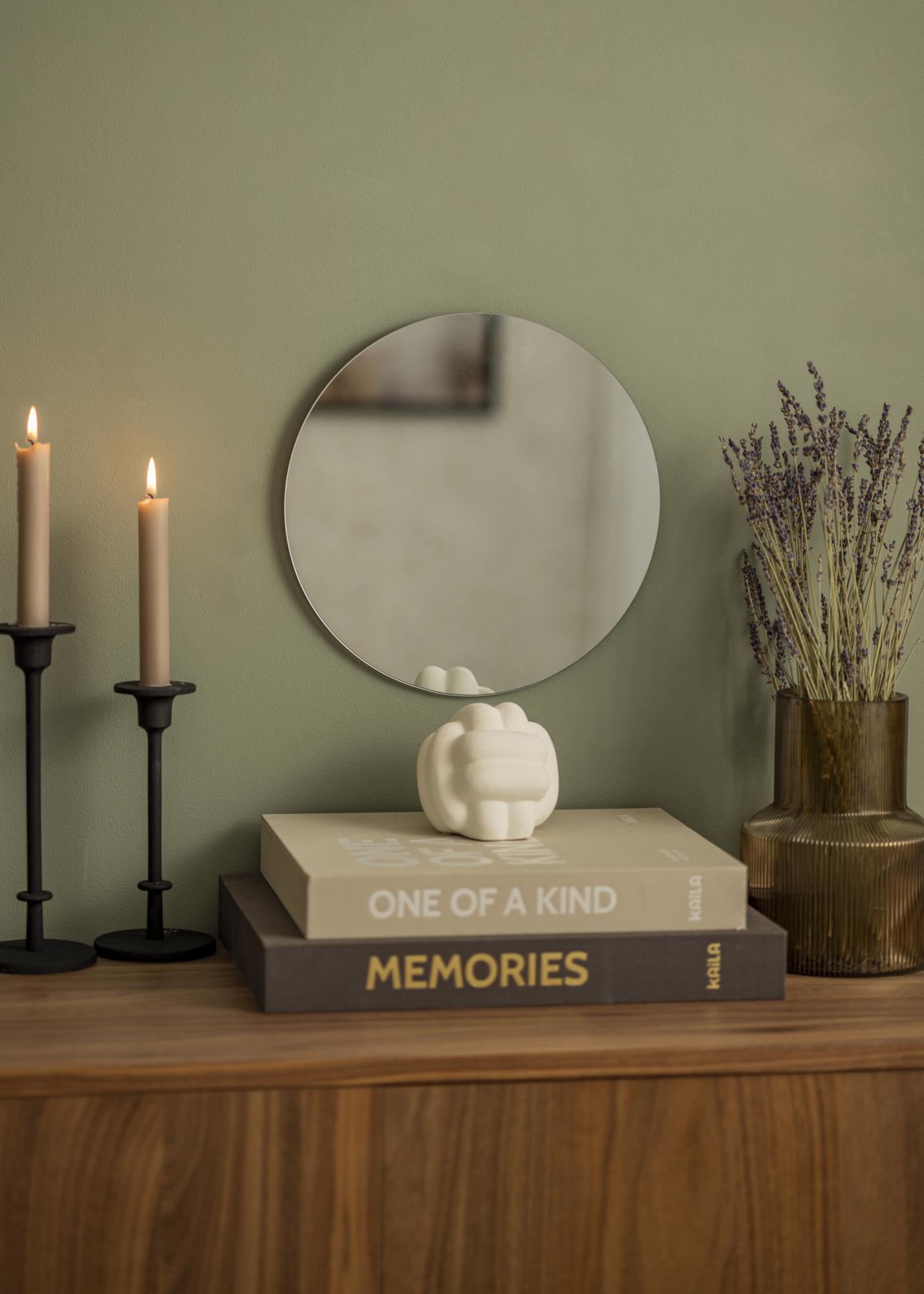 Espelho redondo de 30 cm de diâmetro que faz parte de uma série de espelhos redondos da KAILA. Disponível em 13 tamanhos diferentes para que encontre o tamanho perfeito para o seu quarto. O espelho é extremamente fino e elegante, adequado para todos os tipos de ambientes e estilos de decoração.