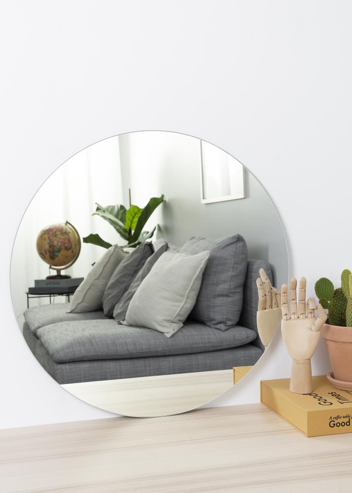 Espelho redondo de 65 cm de diâmetro que faz parte de uma série de espelhos redondos da KAILA. Disponível em 13 tamanhos diferentes para que encontre o tamanho perfeito para o seu quarto. O espelho é extremamente fino e elegante, adequado para todos os tipos de ambientes e estilos de decoração.