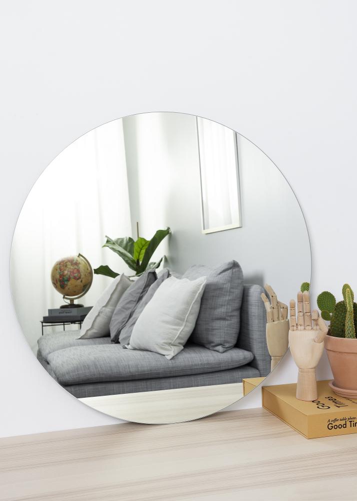 Espelho redondo de 70 cm de diâmetro que faz parte de uma série de espelhos redondos da KAILA. Disponível em 13 tamanhos diferentes para que encontre o tamanho perfeito para o seu quarto. O espelho é extremamente fino e elegante, adequado para todos os tipos de quartos e estilos de decoração.