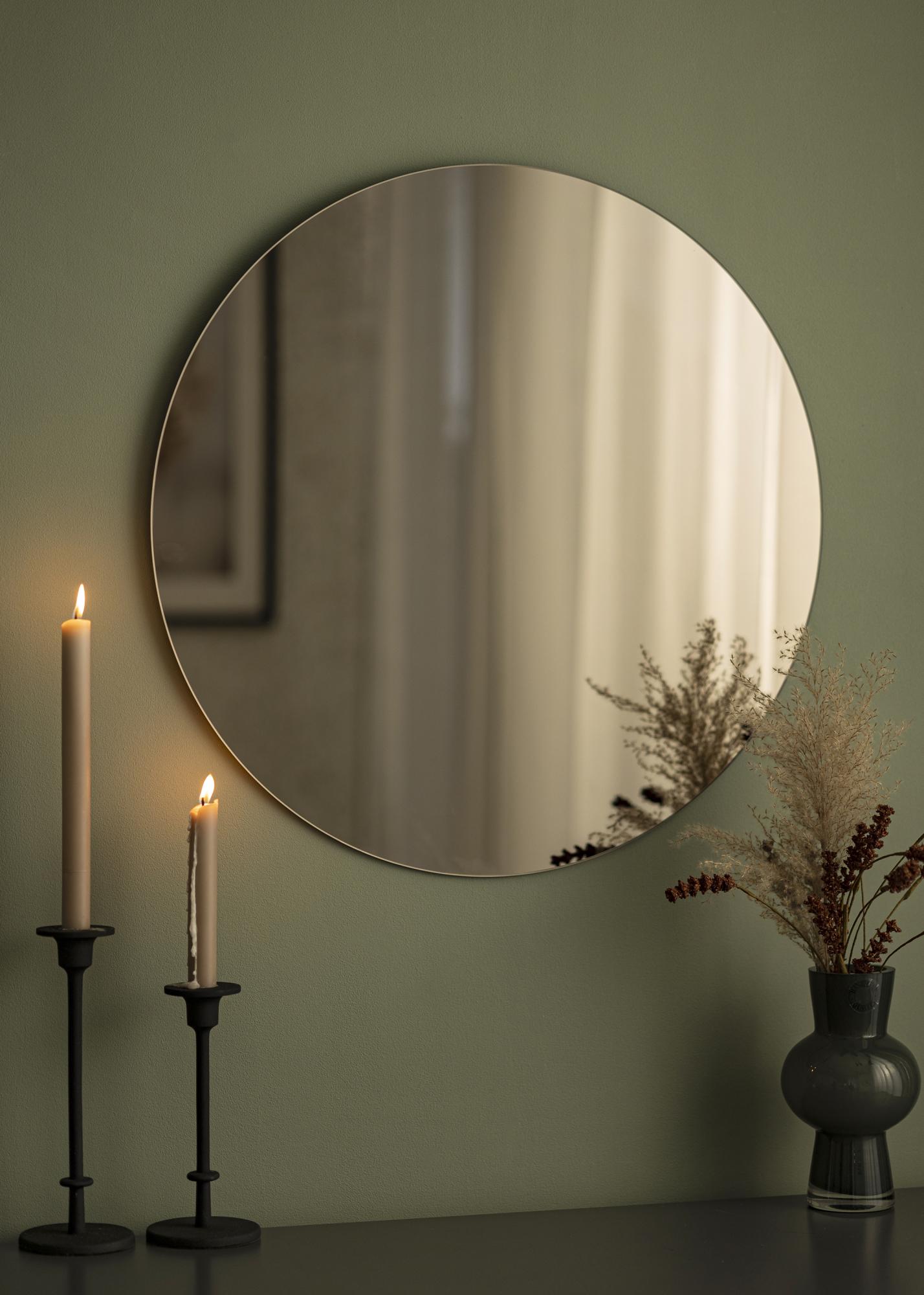 Este espelho redondo tem um design fino sem moldura, o que confere-lhe uma aparência elegante e exclusiva que realça qualquer ambiente. Com vidro espelhado em um tom bronzeado, o espelho de parede tem uma aparência rica e acolhedora que encaixa-se perfeitamente em casas modernas. O espelho faz parte de uma série de espelhos redondos e bronzeados da KAILA e pode escolher entre sete tamanhos diferentes para encontrar o que melhor se adapta à sua casa. Este modelo tem um diâmetro de 60 cm. Pode facilmente pendurar o espelho no corredor ou na sala de estar usando o suporte de parede.