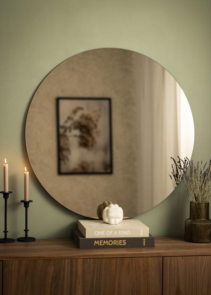 Este espelho redondo tem um design fino sem moldura, o que confere-lhe uma aparência elegante e exclusiva que realça qualquer ambiente. Com vidro espelhado em um tom bronzeado, o espelho de parede tem uma aparência rica e acolhedora que encaixa-se perfeitamente em casas modernas. O espelho faz parte de uma série de espelhos redondos e bronzeados da KAILA e pode escolher entre sete tamanhos diferentes para encontrar o que melhor se adapta à sua casa. Este modelo tem um diâmetro de 90 cm. Pode facilmente pendurar o espelho no corredor ou na sala de estar usando o suporte de parede.