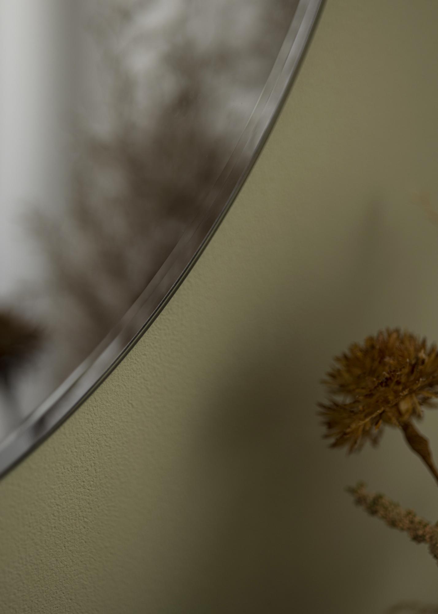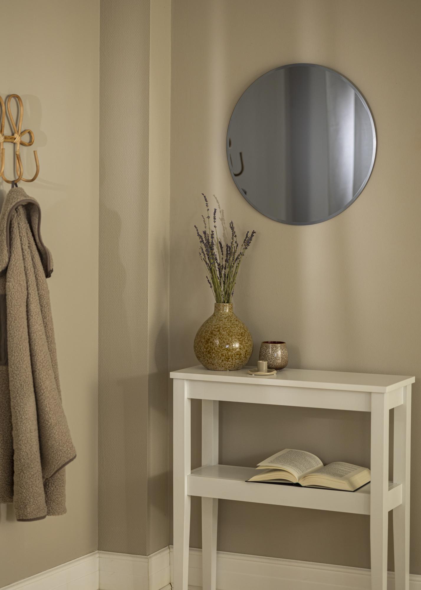 Um espelho com vidro espelhado tonalizado é um detalhe de decoração excelente com muita personalidade. Esta é uma variante redonda com vidro tonalizado em cinzento - um tom mais suave que proporciona uma sensação luxuosa e semelhante a um hotel. A cor cinzento combina perfeitamente em casas decoradas em um estilo mais escuro, mas também cria um contraste elegante em paredes claras. Este espelho de parede reflete a luz como um espelho comum, mas em um tom mais suave.