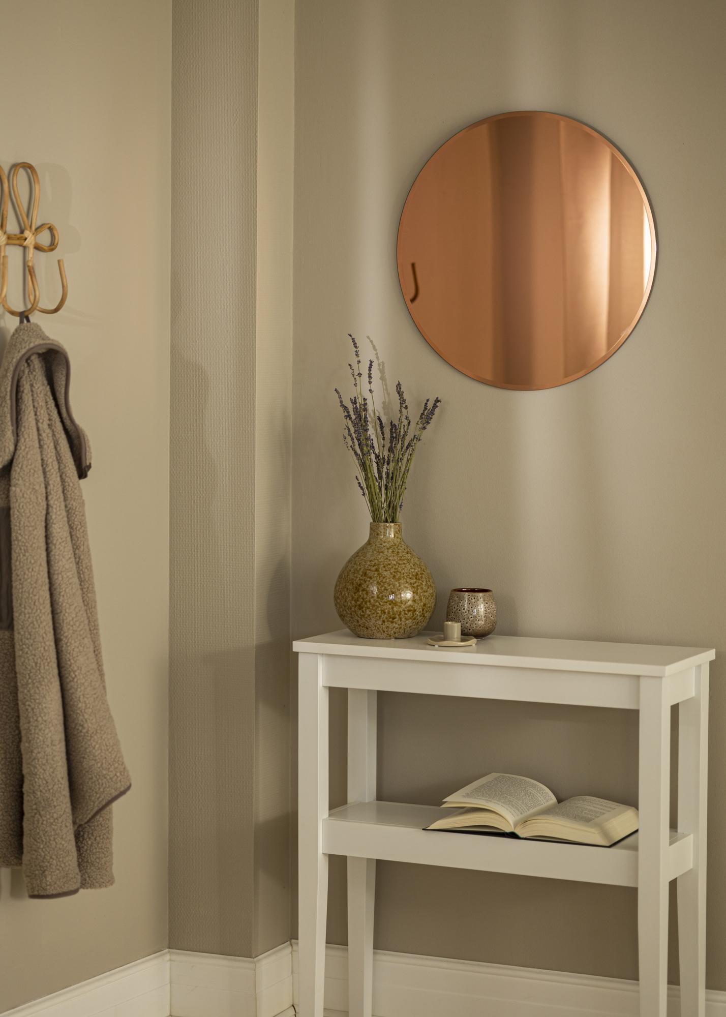 O Rose Gold Deluxe é um espelho de parede com design atemporal, com um toque moderno na forma de um vidro espelhado tonalizado. A tonalidade quente de ouro rosado do vidro espelhado proporciona uma expressão exclusiva e única, combinada perfeitamente com a forma redonda elegante. Para um toque extra de sofisticação, este espelho também possui borda facetada.