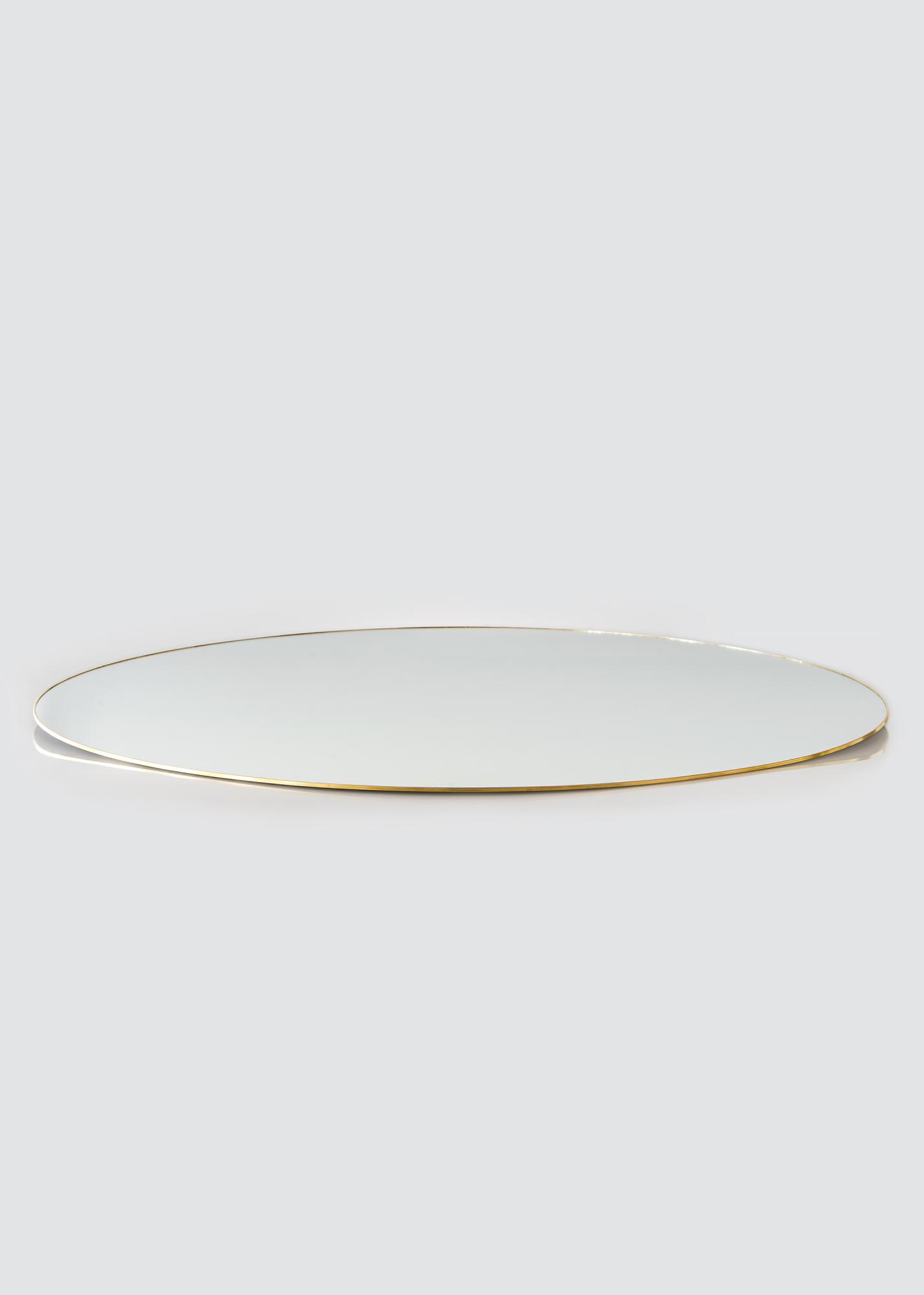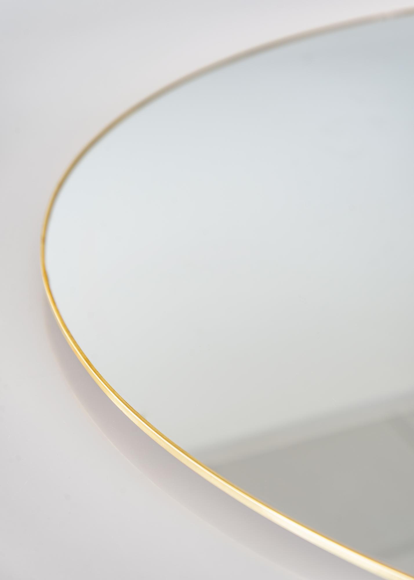 KAILA Thin Brass é um design sueco e está disponível em vários tamanhos. Este modelo tem um diâmetro de 100 cm. O espelho possui suportes de parede.