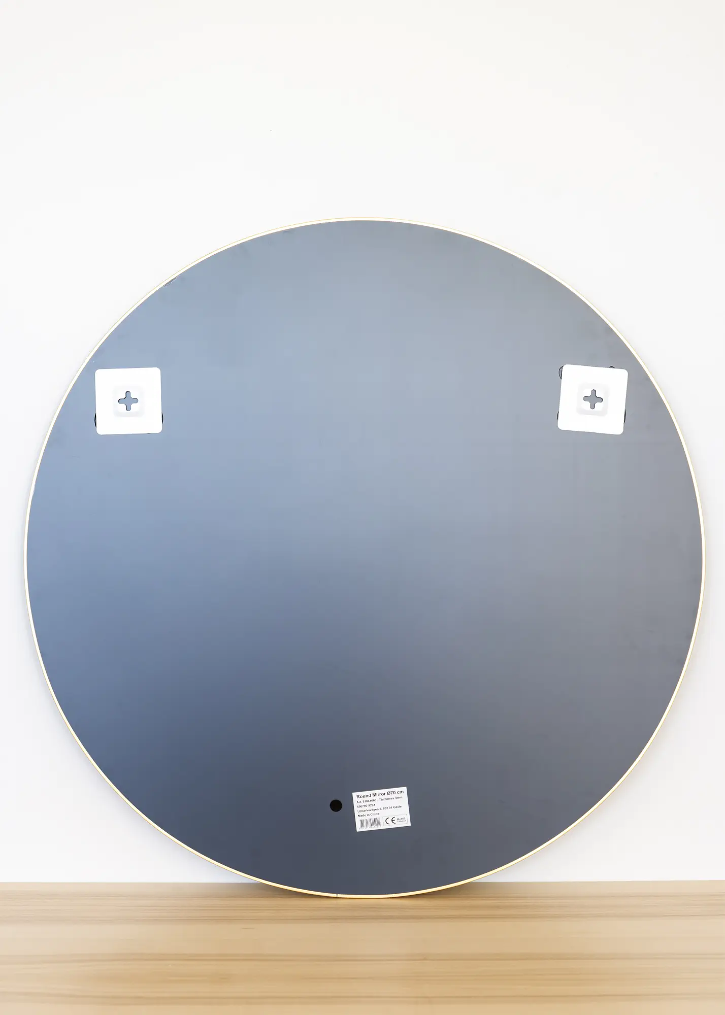 Este espelho redondo está disponível em vários tamanhos, sendo este modelo com 70 cm de diâmetro. O espelho possui suportes de parede.