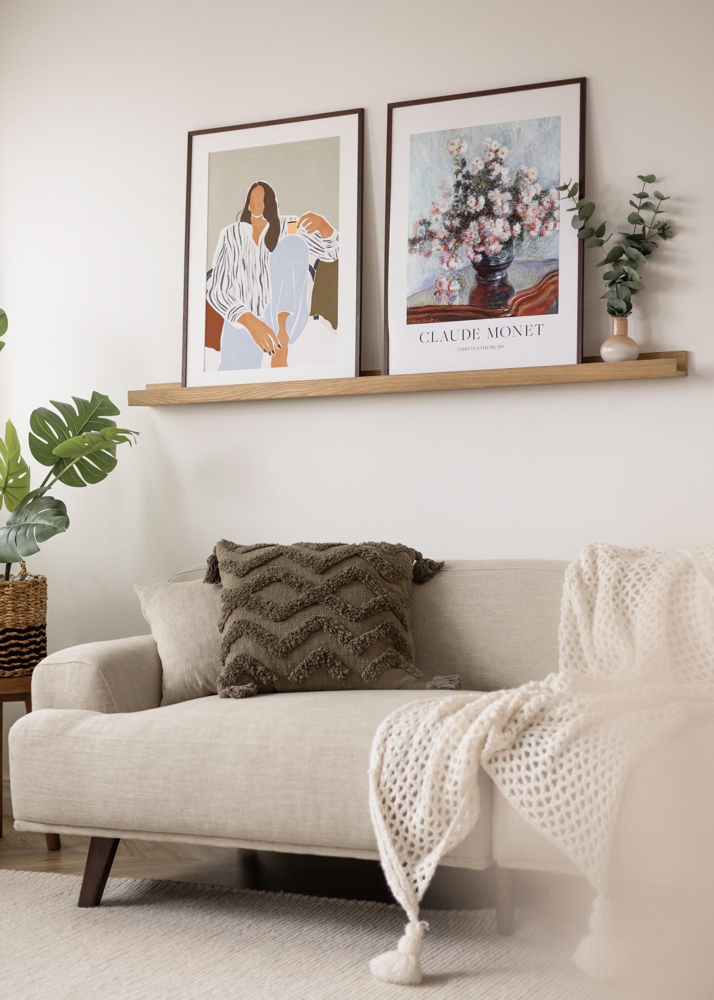Com uma prateleira de quadros prática, você exibe seus quadros de forma elegante e ainda tem excelentes oportunidades para variar sua arte de parede. Esta prateleira de quadros é feita de carvalho maciço e possui um design elegante com linhas simples e retas. A própria prateleira tem uma ranhura embutida que dá suporte aos seus quadros e faz com que eles fiquem em um ângulo bonito inclinados contra a parede. A prateleira de quadros está disponível em vários comprimentos, sendo que esta variante tem um comprimento de 150 cm. A prateleira de quadros também possui orifícios pré-perfurados, e para facilitar ainda mais, acompanham parafusos e buchas adequados.