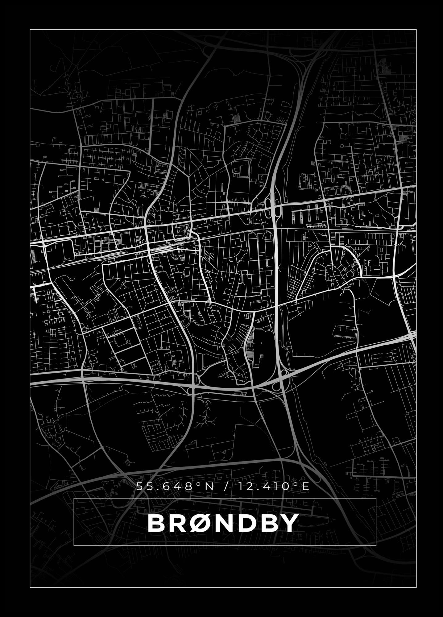 Mapa - Brøndby - Cartaz Preto (21x29.7 cm (A4))