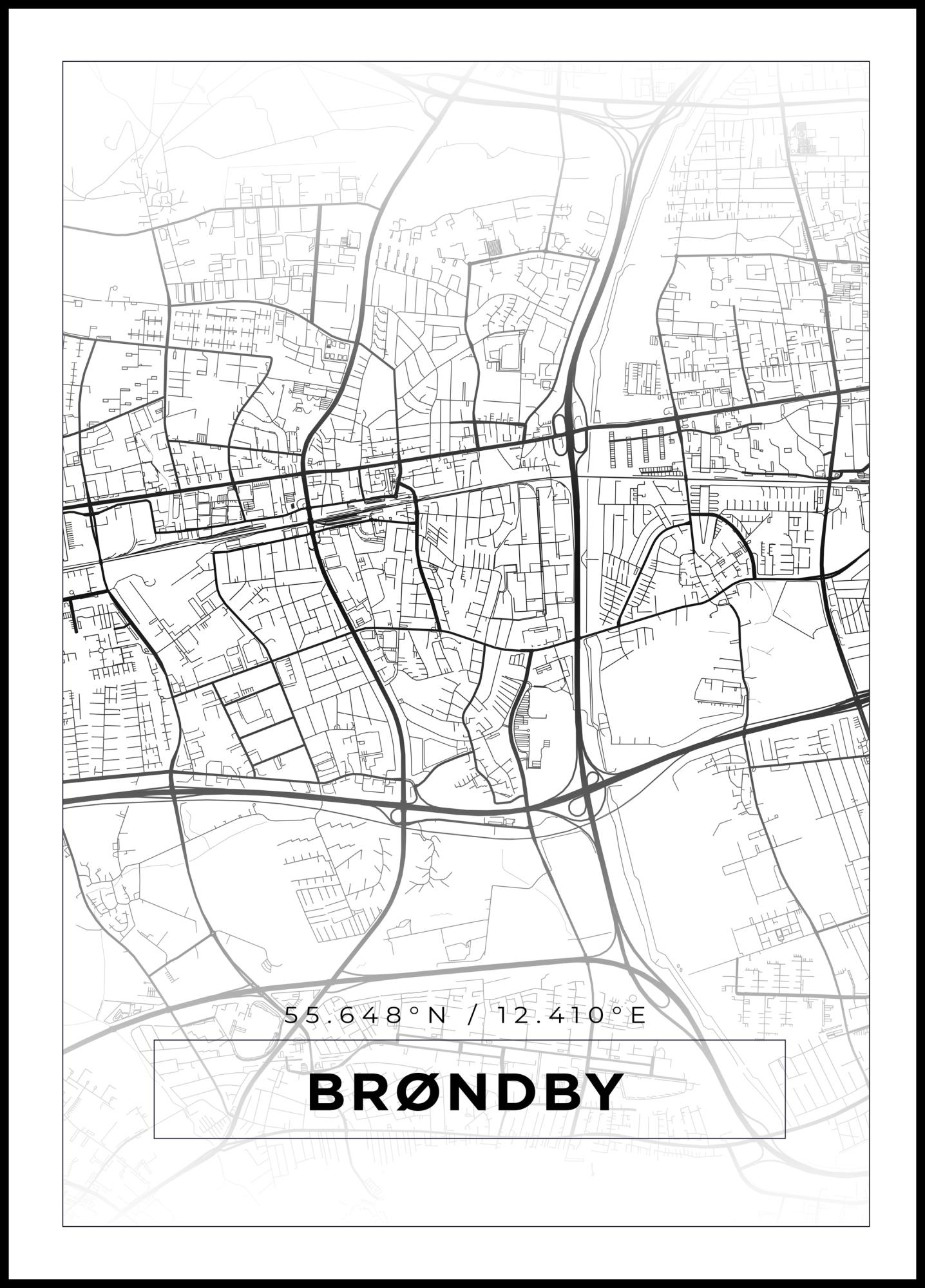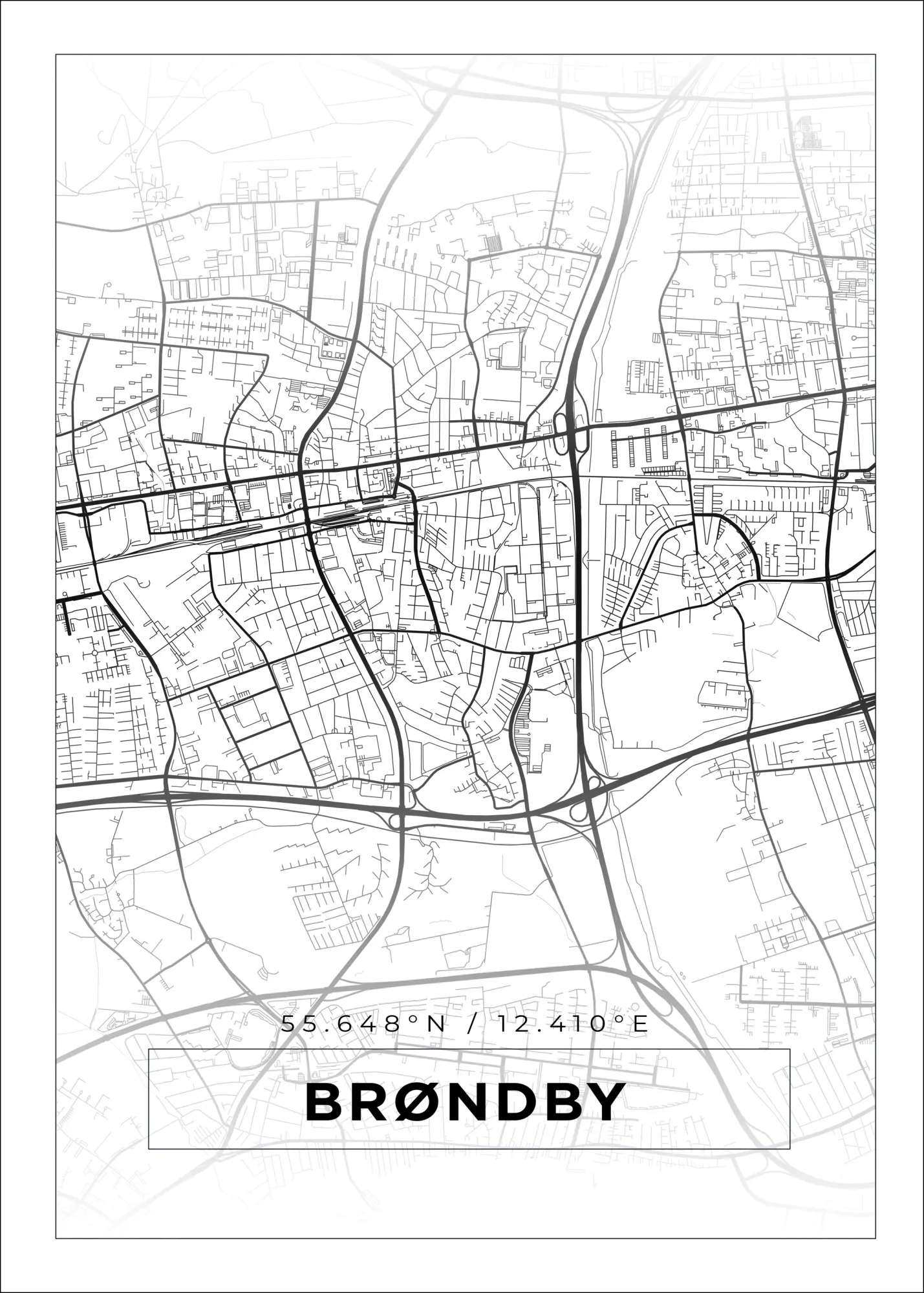 Mapa - Brøndby - Cartaz Branco (21x29.7 cm (A4))