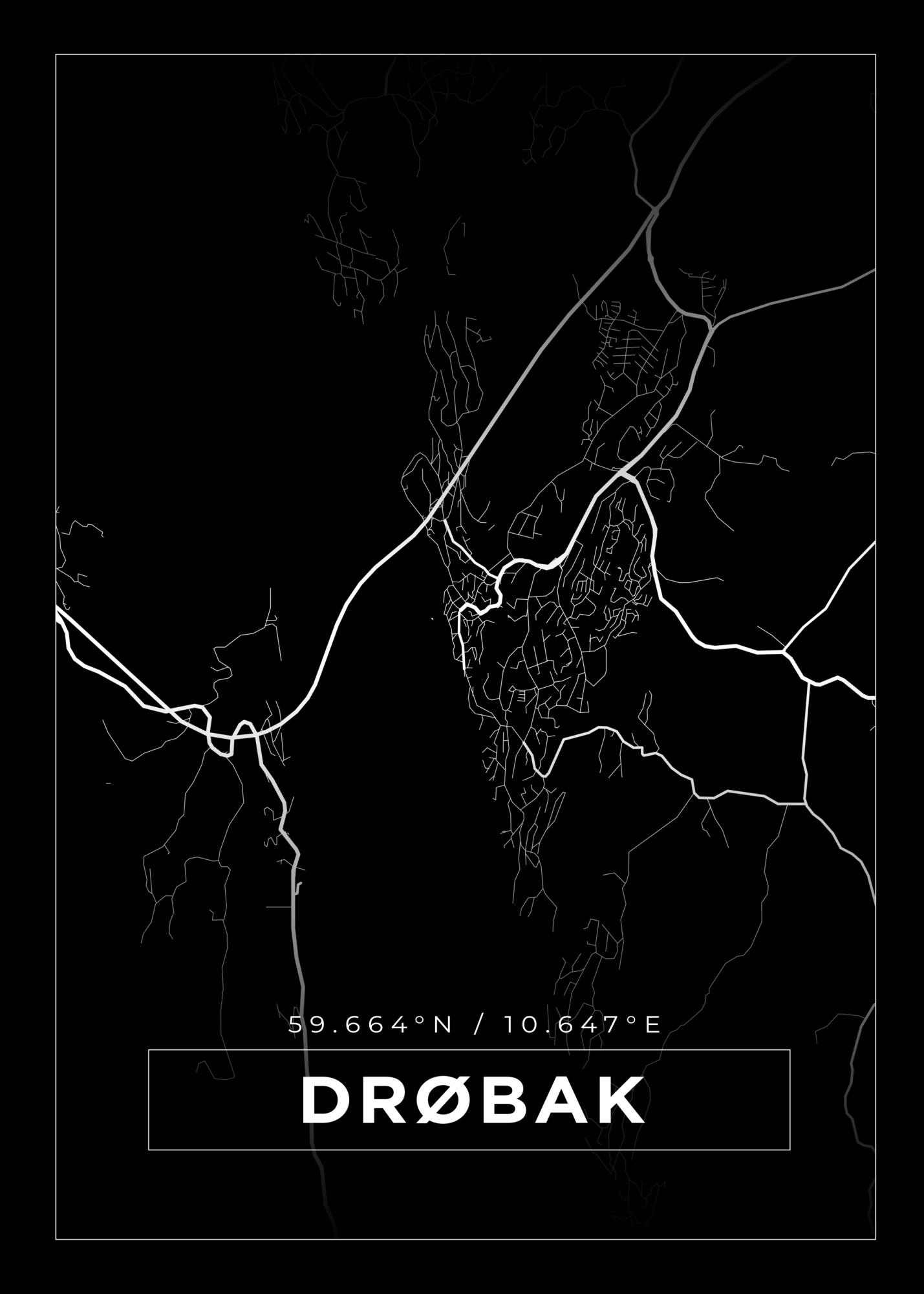 Mapa - Drøbak - Cartaz Preto (21x29.7 cm (A4))