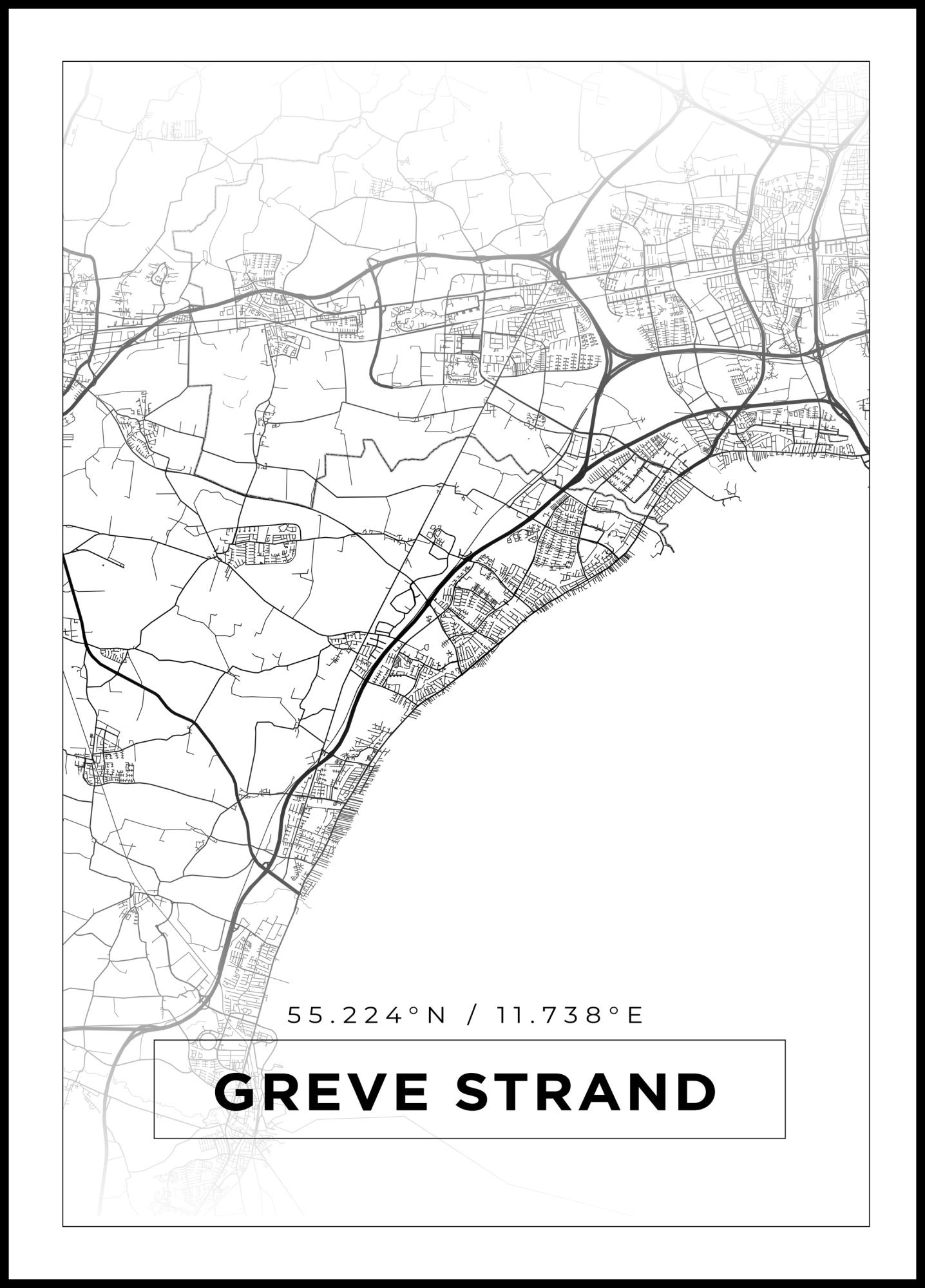 Mapa - Greve Strand - Cartaz Branco (21x29.7 cm (A4))