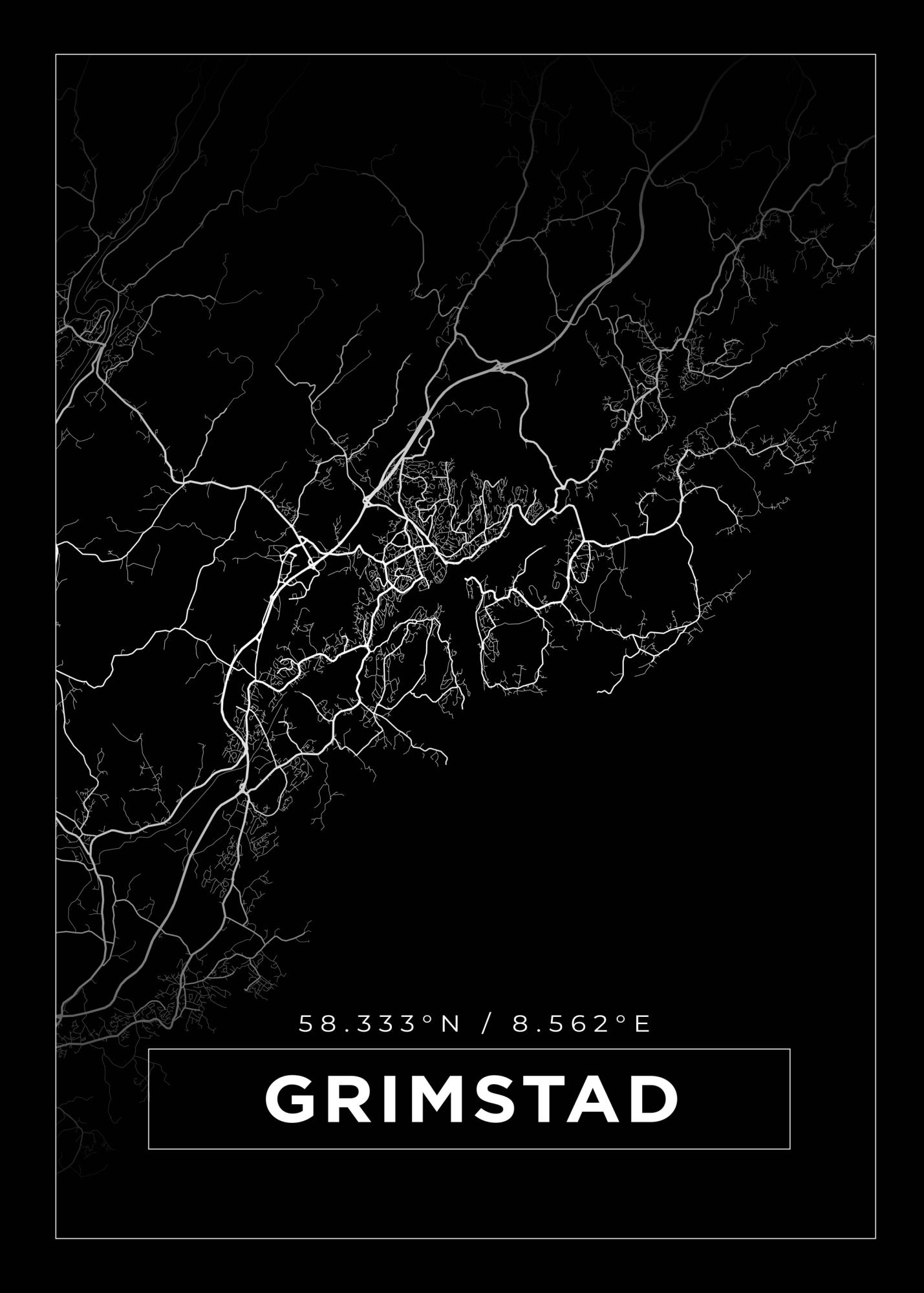 Mapa - Grimstad - Cartaz Preto (21x29.7 cm (A4))