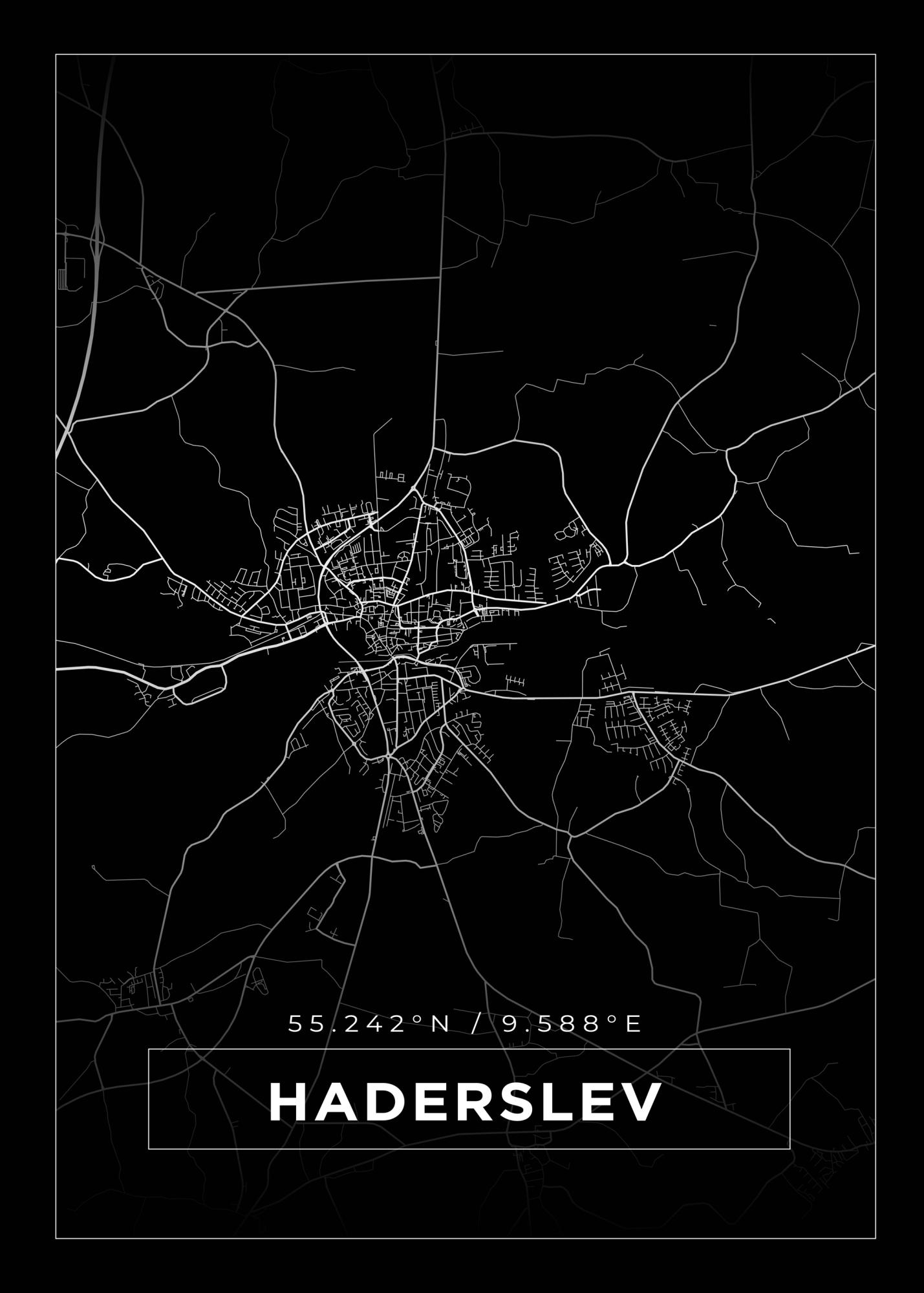 Mapa - Haderslev - Cartaz Preto (21x29.7 cm (A4))