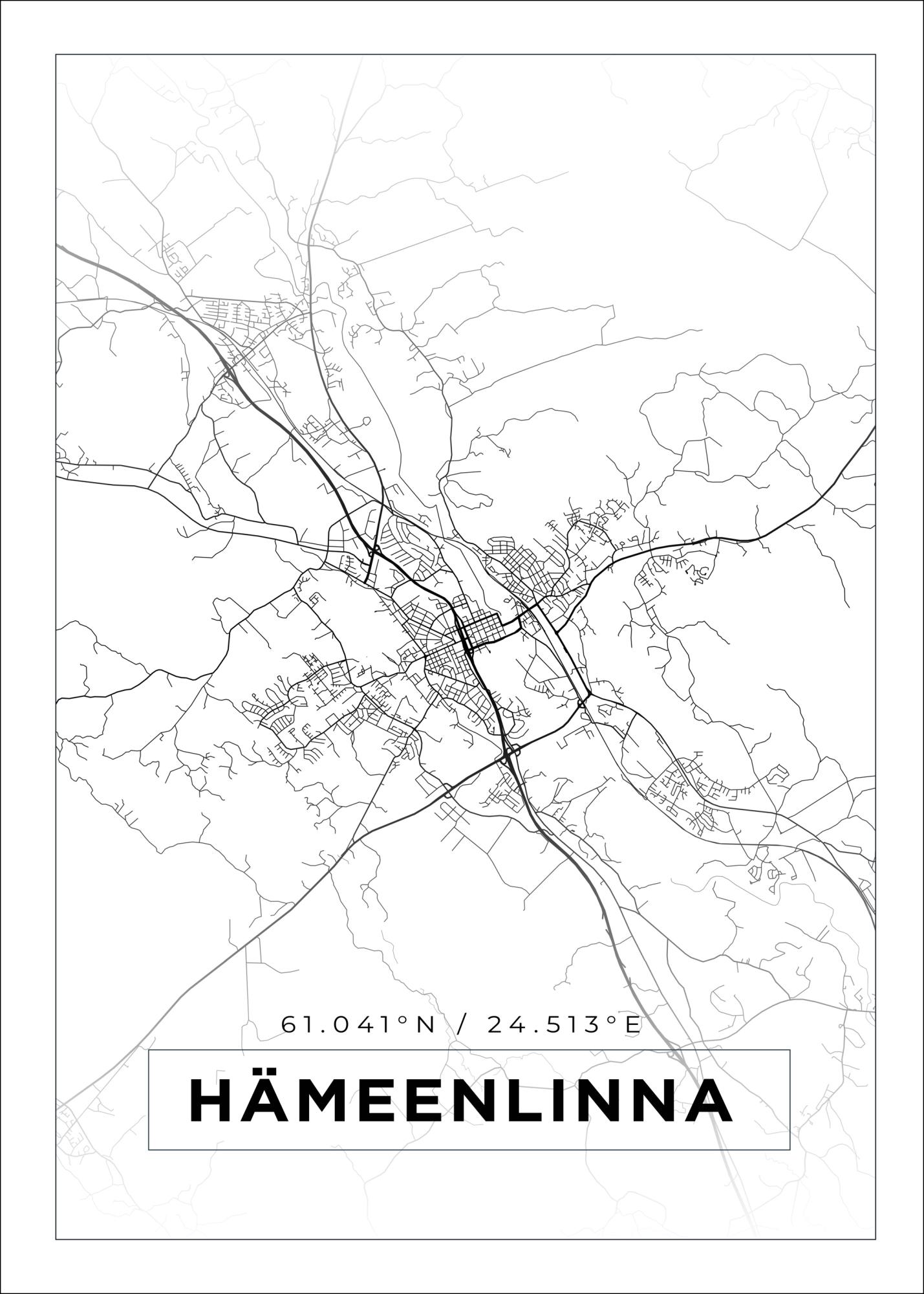 Mapa - Hämeenlinna - Cartaz Branco (21x29.7 cm (A4))