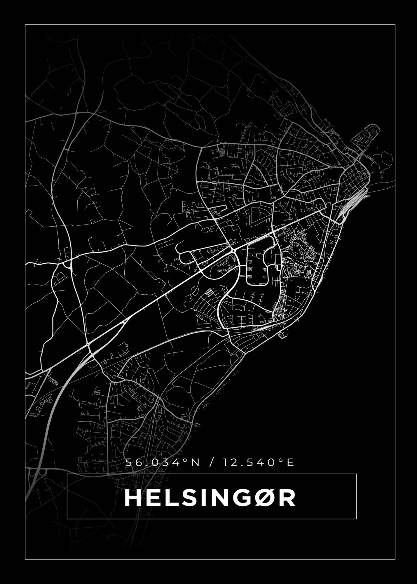 Mapa - Helsingør - Cartaz Preto (21x29.7 cm (A4))
