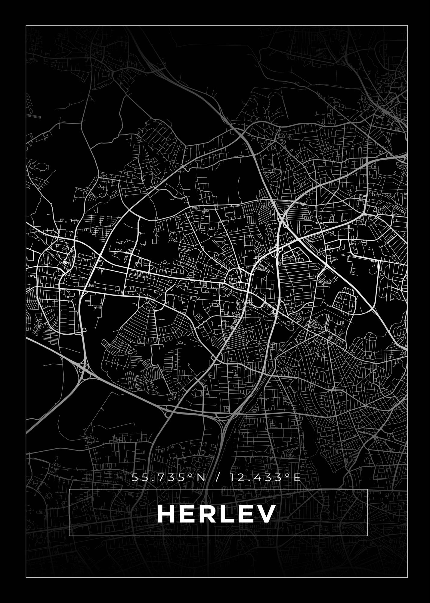 Mapa - Herlev - Cartaz Preto (21x29.7 cm (A4))