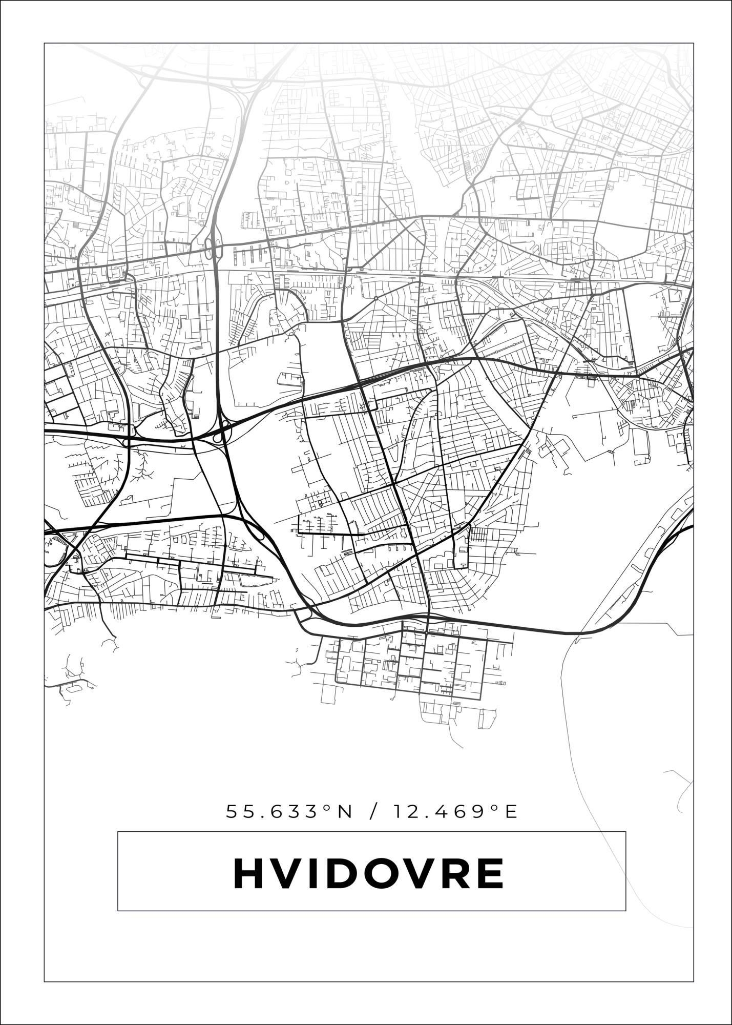 Mapa - Hvidovre - Cartaz Branco (21x29.7 cm (A4))