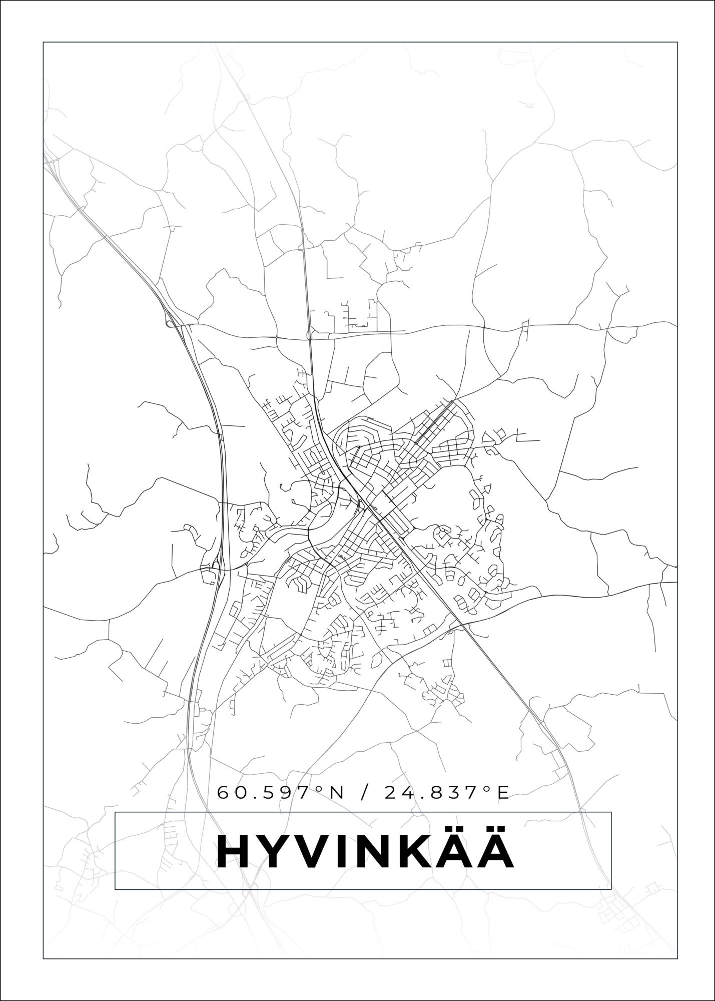 Mapa - Hyvinkää - Cartaz Branco (21x29.7 cm (A4))