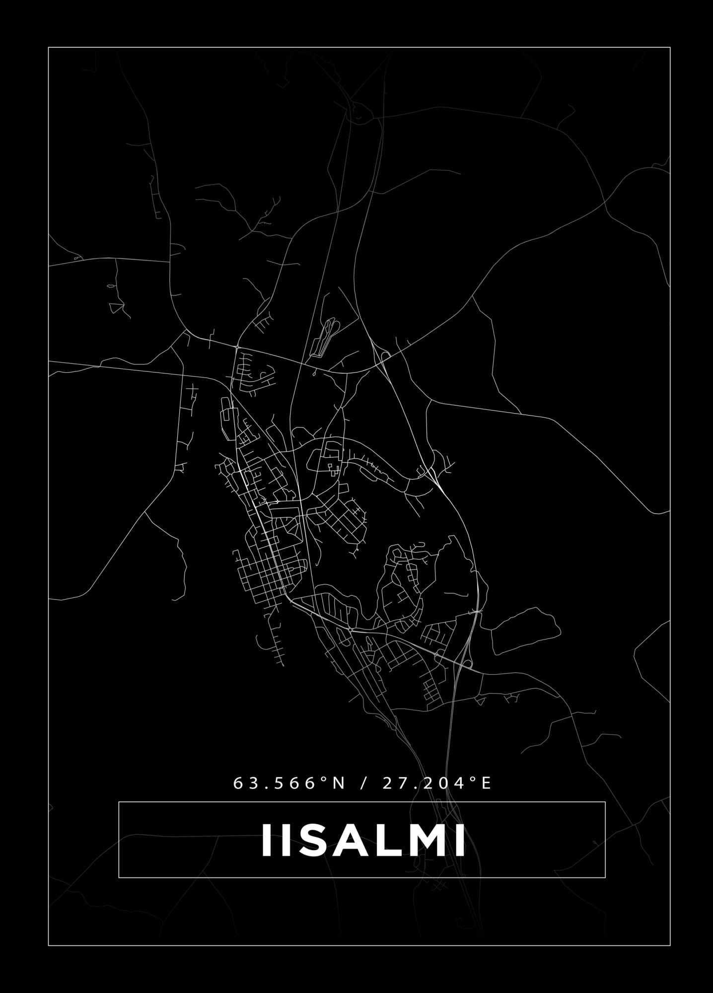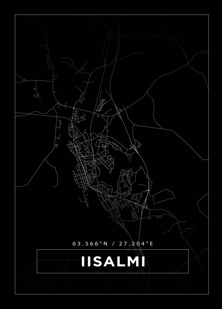 Mapa - Iisalmi - Cartaz Preto (21x29.7 cm (A4))