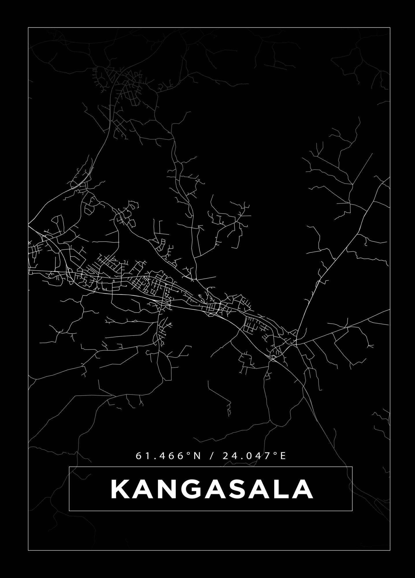 Mapa - Kangasala - Cartaz Preto (21x29.7 cm (A4))