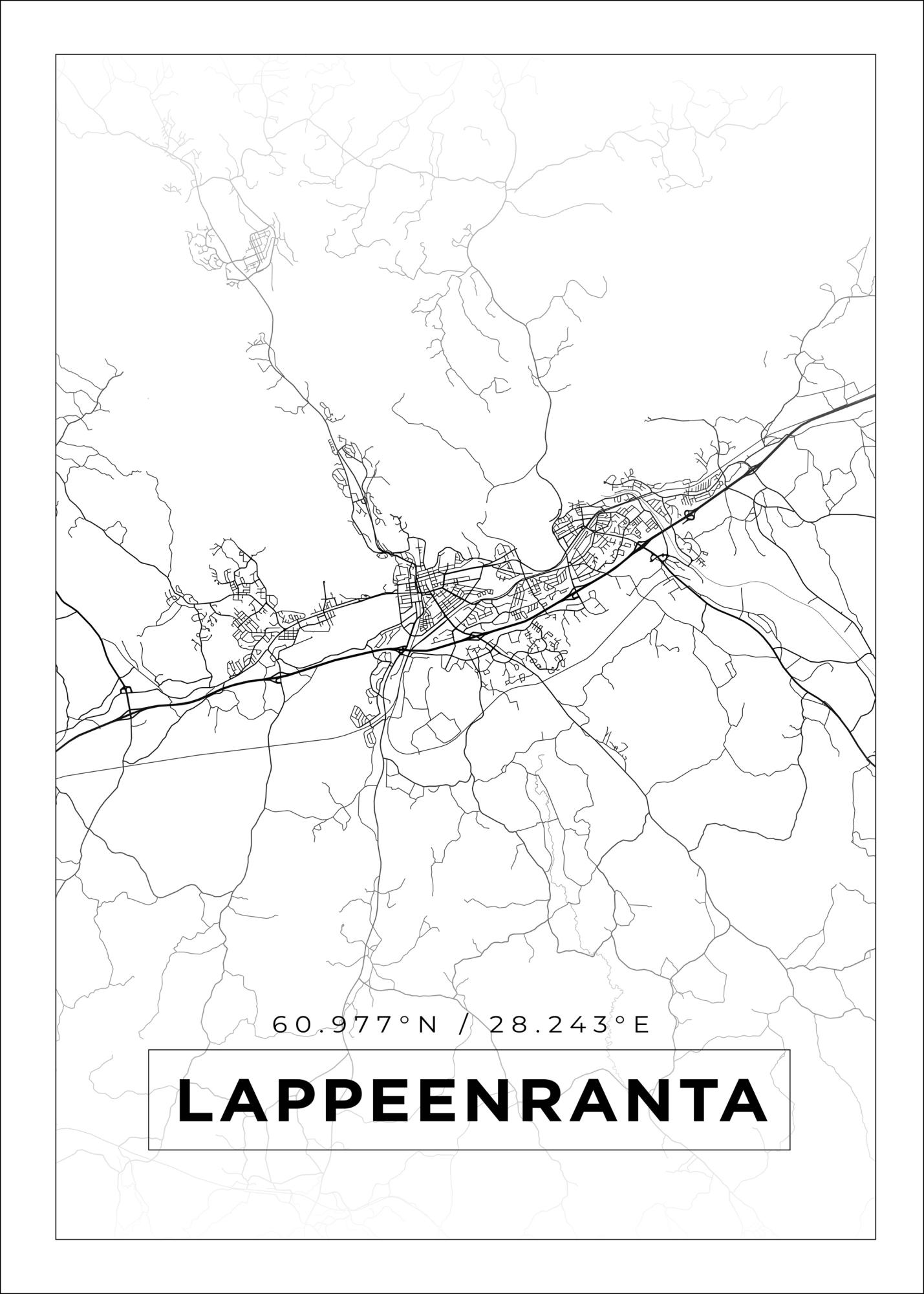 Mapa - Lappeenranta - Cartaz Branco (21x29.7 cm (A4))