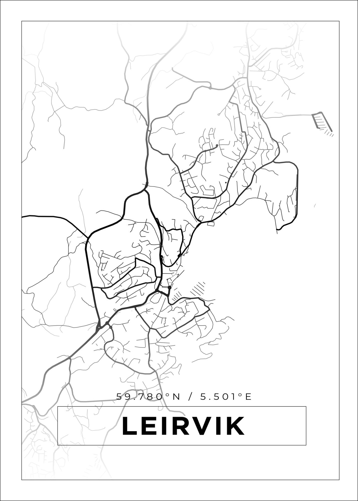 Mapa - Leirvik - Cartaz Branco (21x29.7 cm (A4))