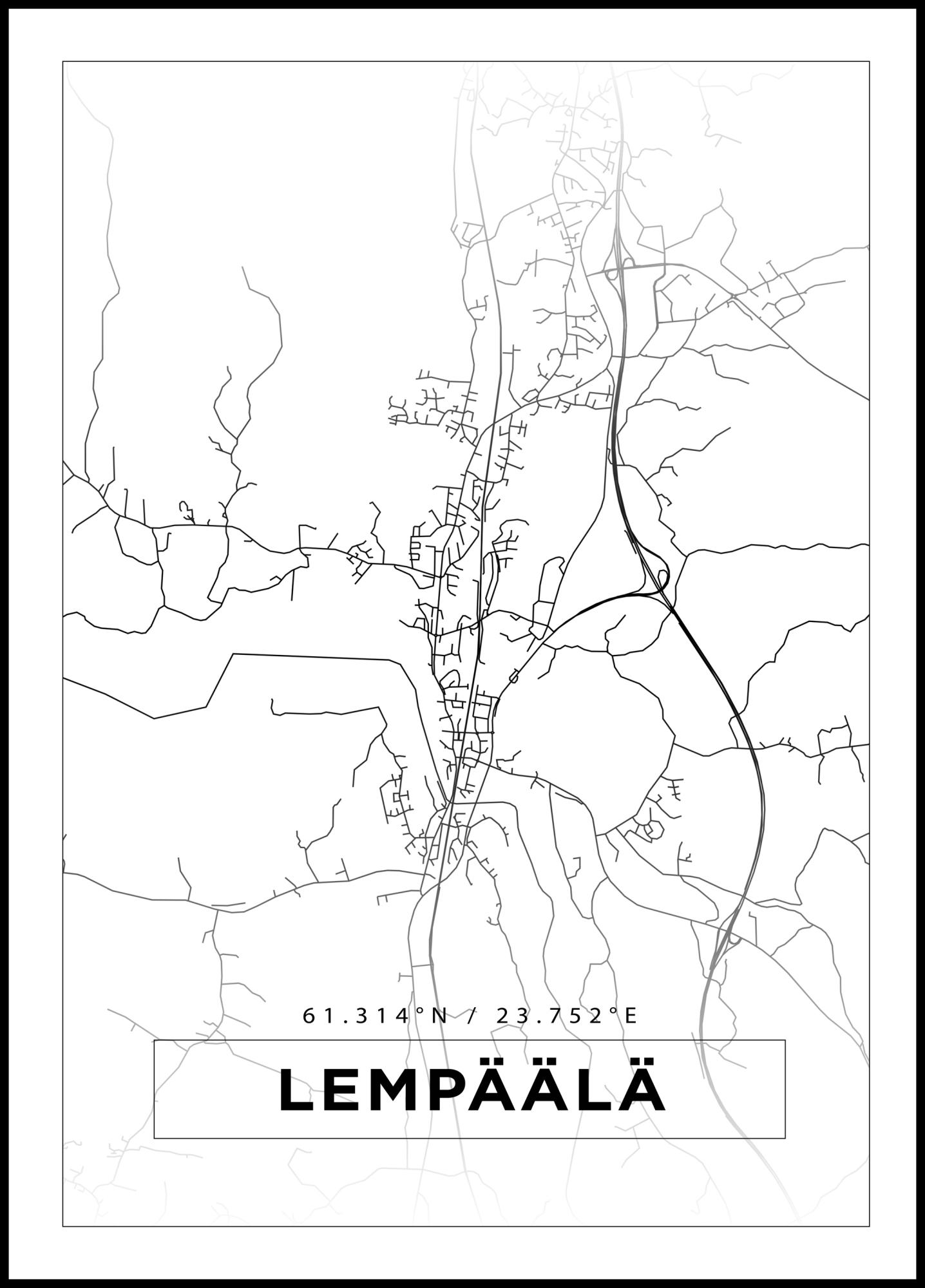 Mapa - Lempäälä - Cartaz Branco (21x29.7 cm (A4))