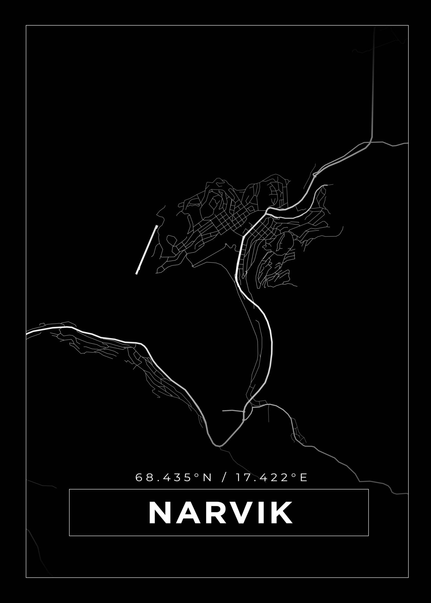 Mapa - Narvik - Cartaz Preto (21x29.7 cm (A4))