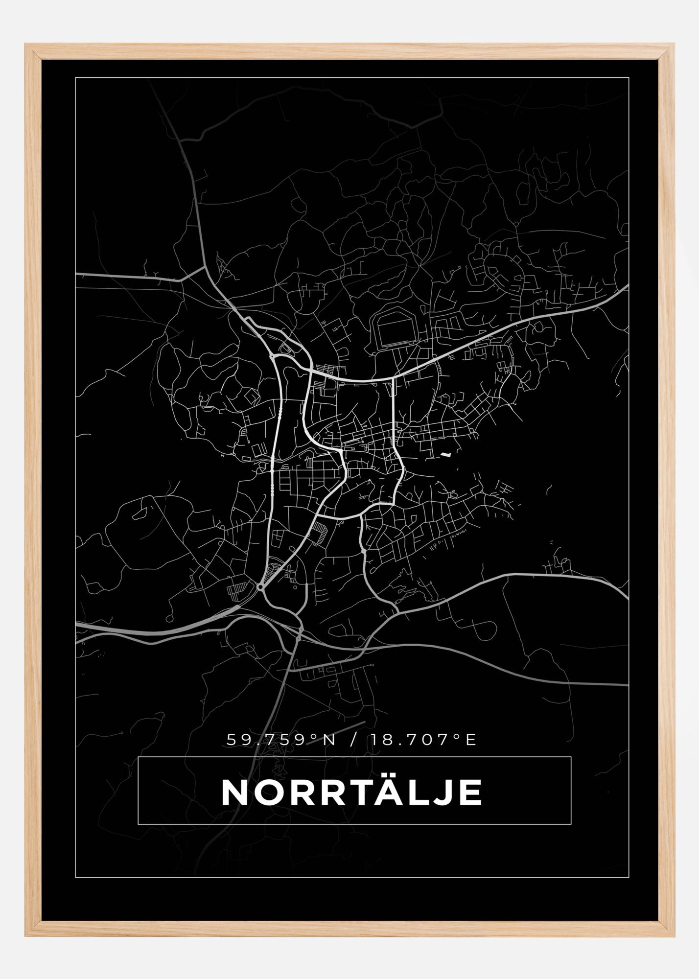 Mapa - Norrtälje - Cartaz Preto (21x29.7 cm (A4))