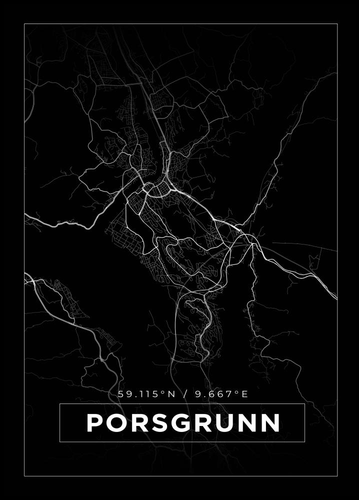 Mapa - Porsgrunn - Cartaz Preto (40x50 cm)