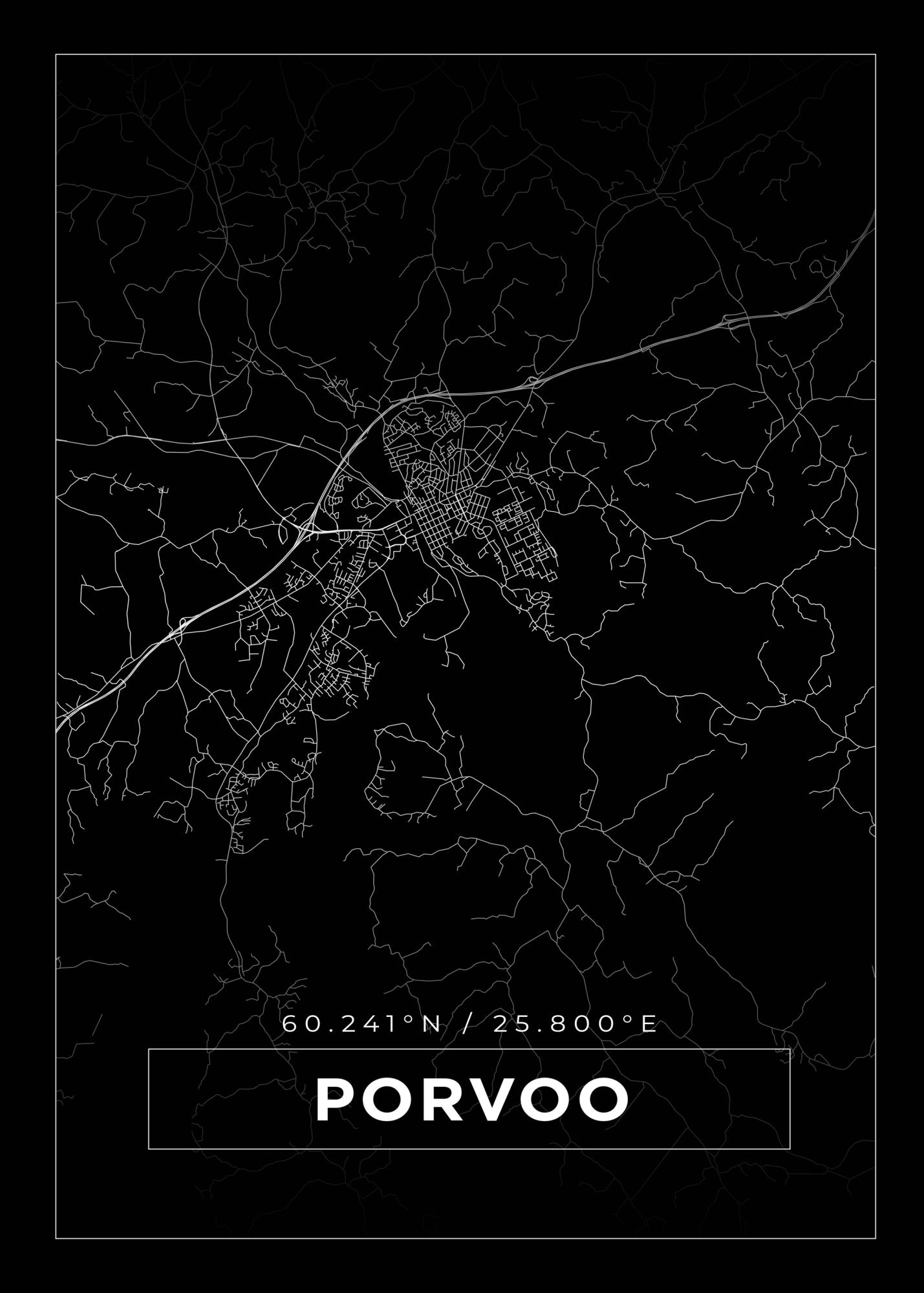 Mapa - Porvoo - Cartaz Preto (21x29.7 cm (A4))