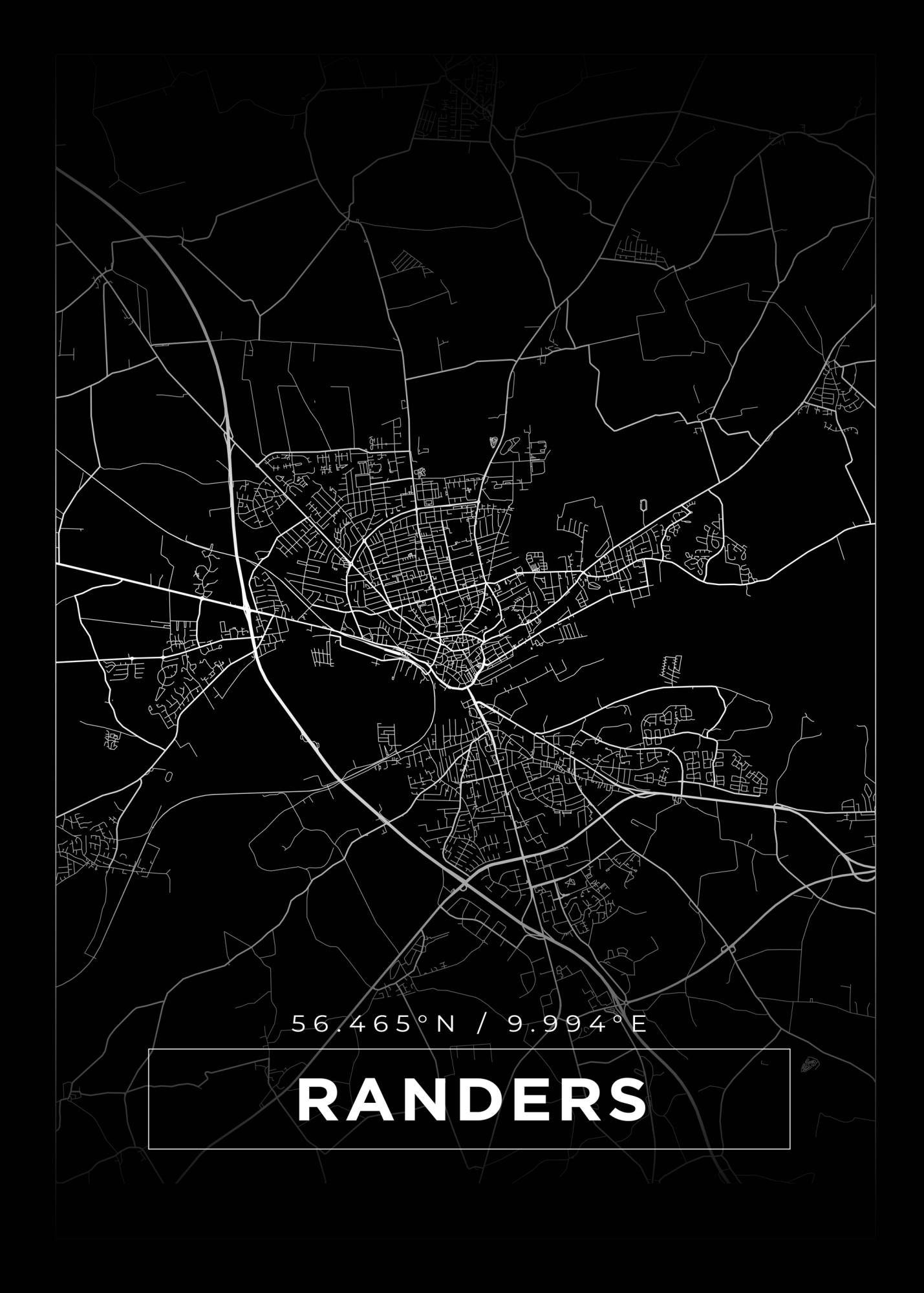 Mapa - Randers - Cartaz Preto (21x29.7 cm (A4))