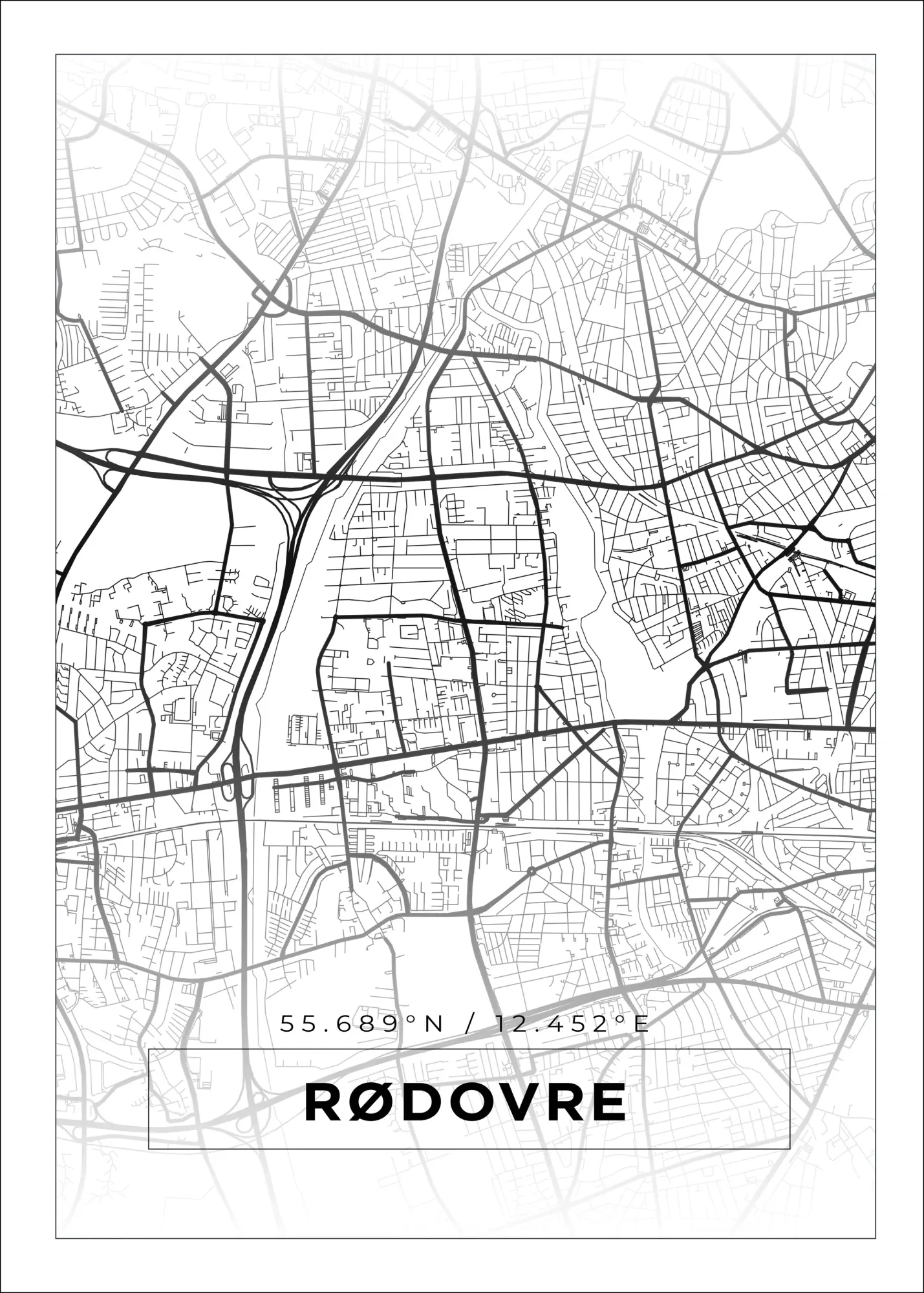 Mapa - Rødovre - Cartaz Branco (21x29.7 cm (A4))