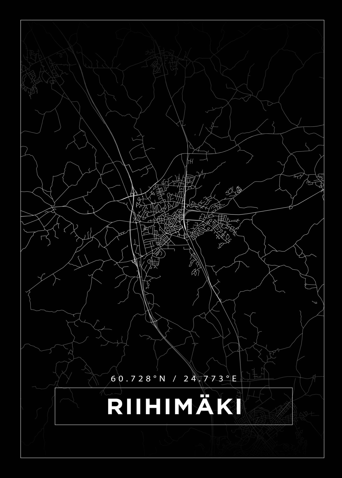 Mapa - Riihimäki - Cartaz Preto (21x29.7 cm (A4))