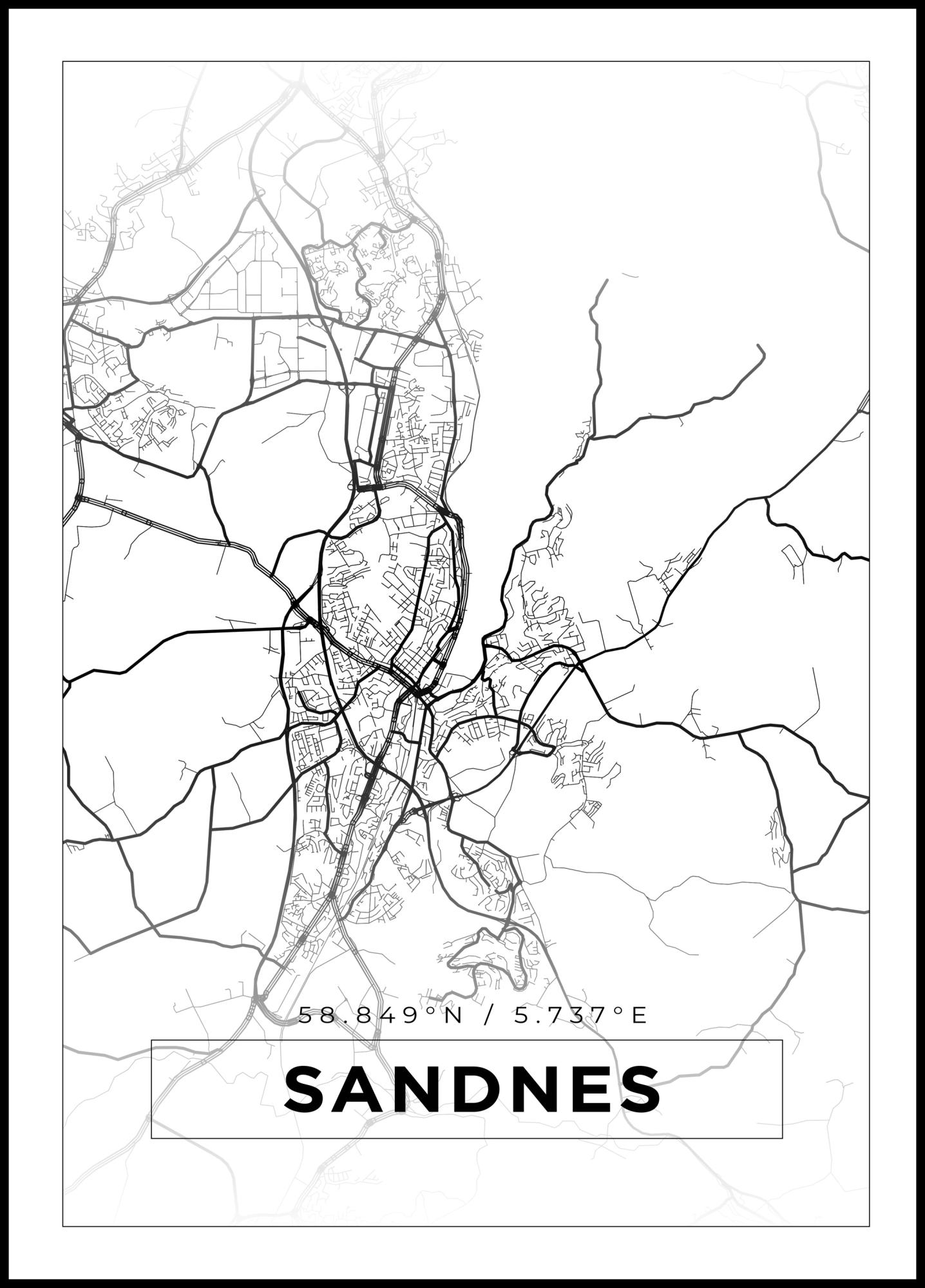 Mapa - Sandnes - Cartaz Branco (21x29.7 cm (A4))