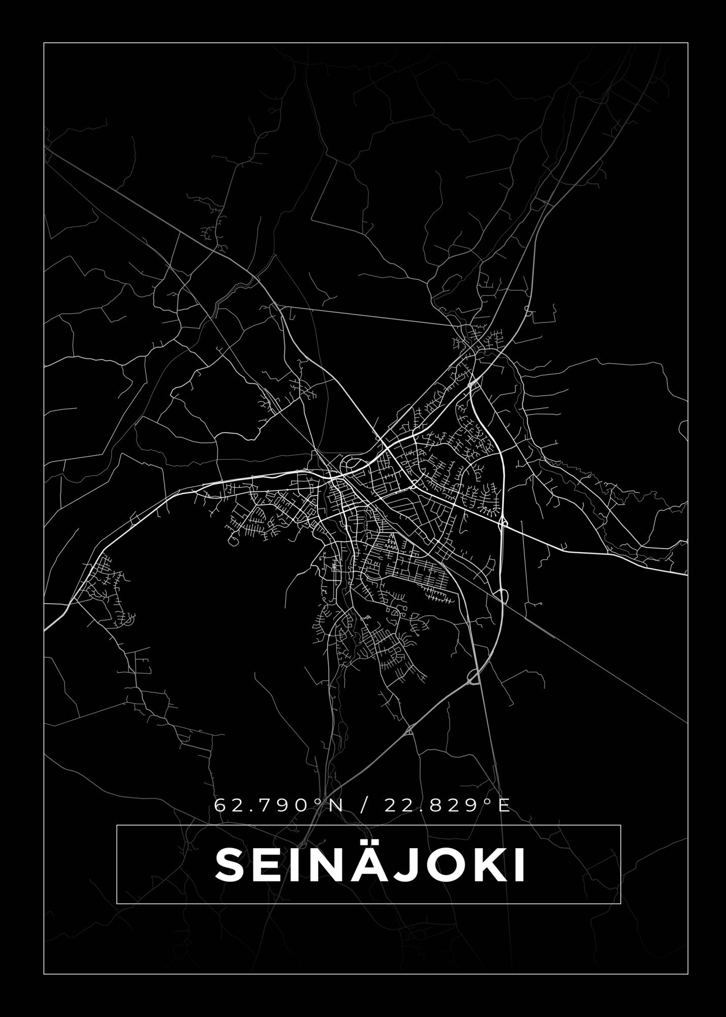 Mapa - Seinäjoki - Cartaz Preto (21x29.7 cm (A4))