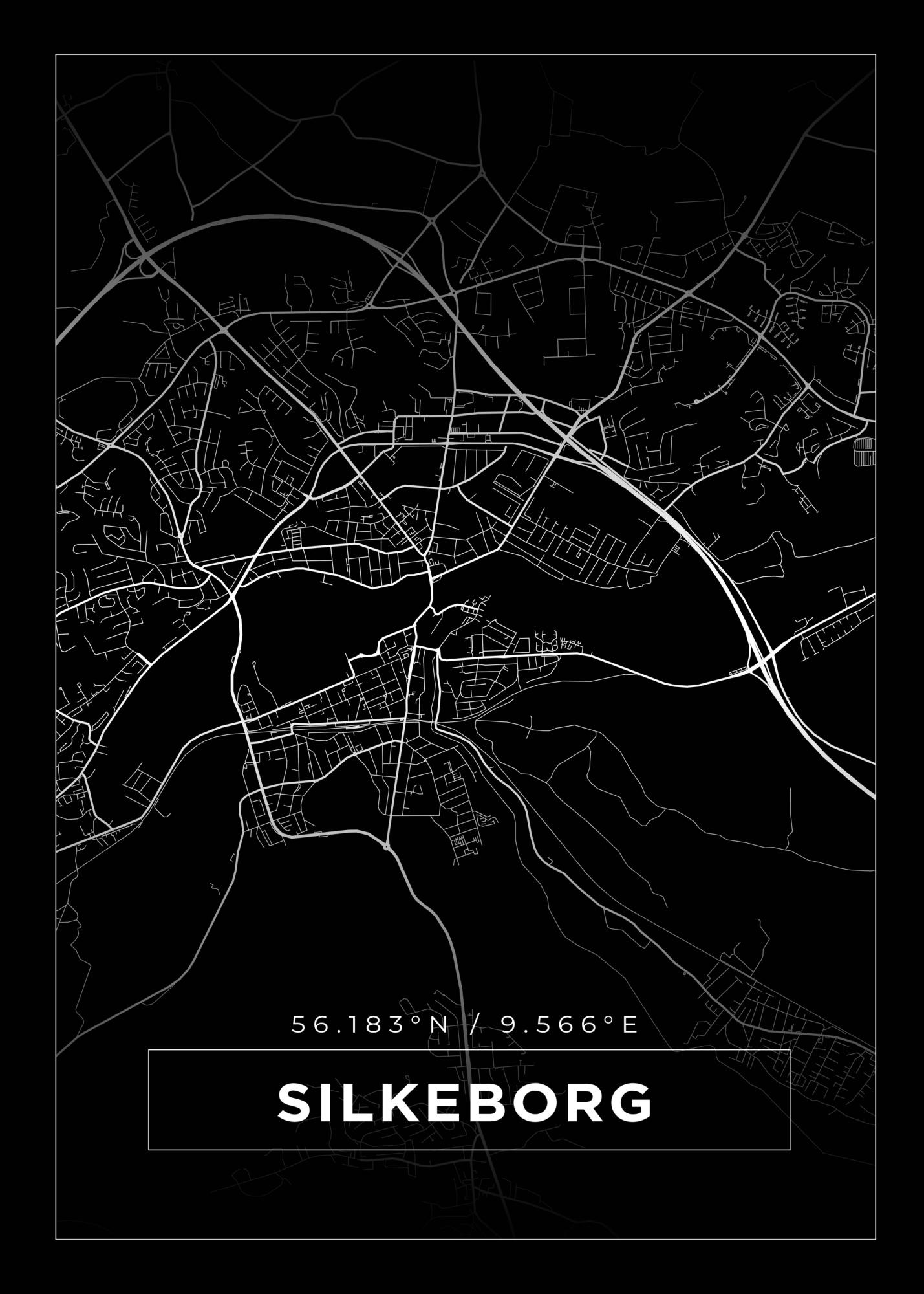 Mapa - Silkeborg - Cartaz Preto (21x29.7 cm (A4))
