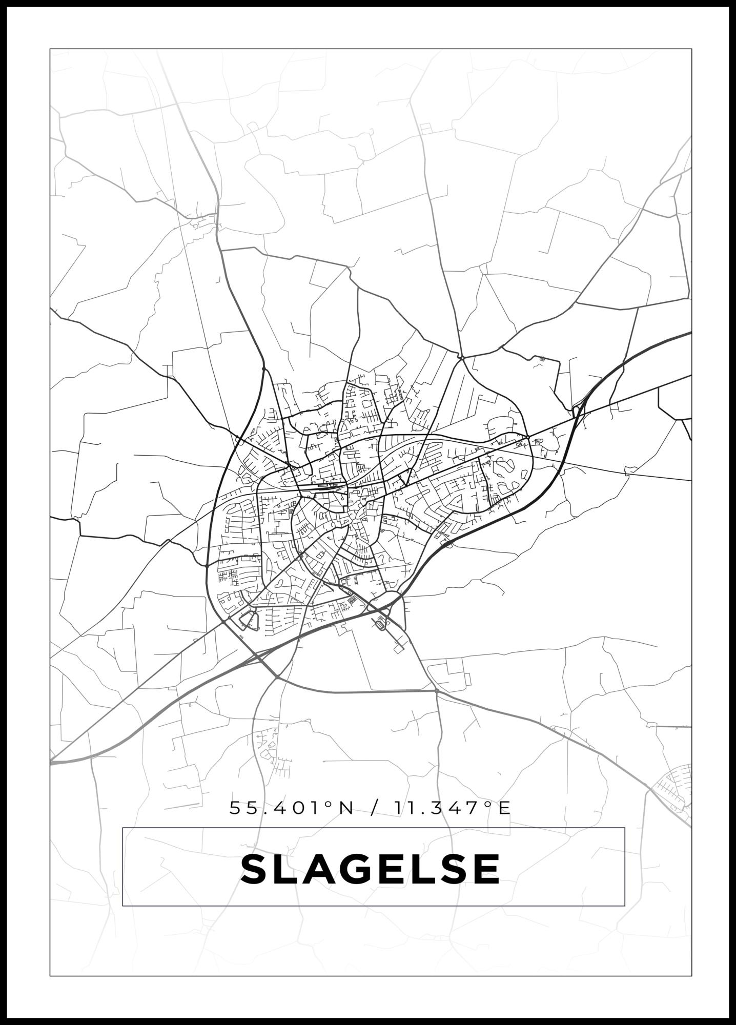 Mapa - Slagelse - Cartaz Branco (21x29.7 cm (A4))