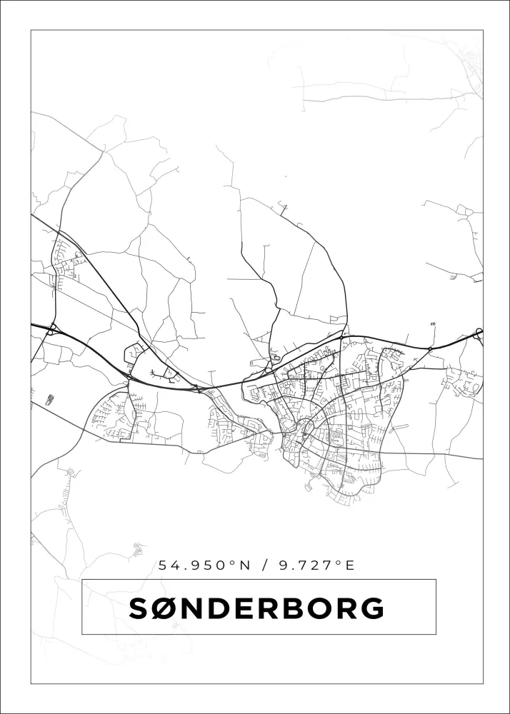 Mapa - Sønderborg - Cartaz Branco (21x29.7 cm (A4))