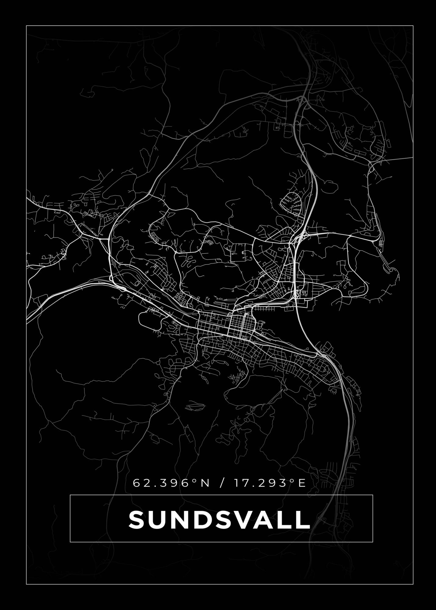 Mapa - Sundsvall - Cartaz Preto (21x29.7 cm (A4))
