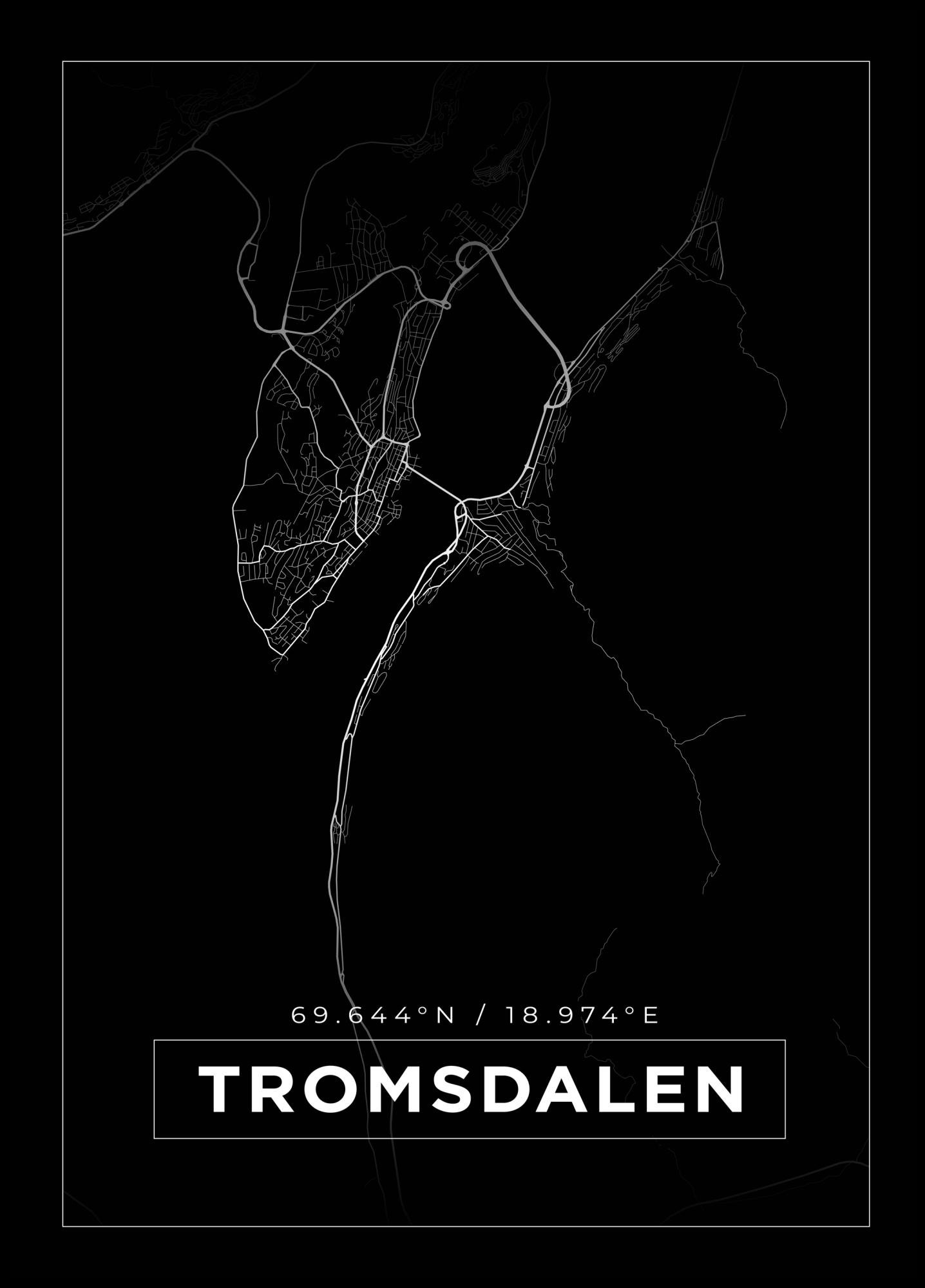 Mapa - Tromsdalen - Cartaz Preto (21x29.7 cm (A4))