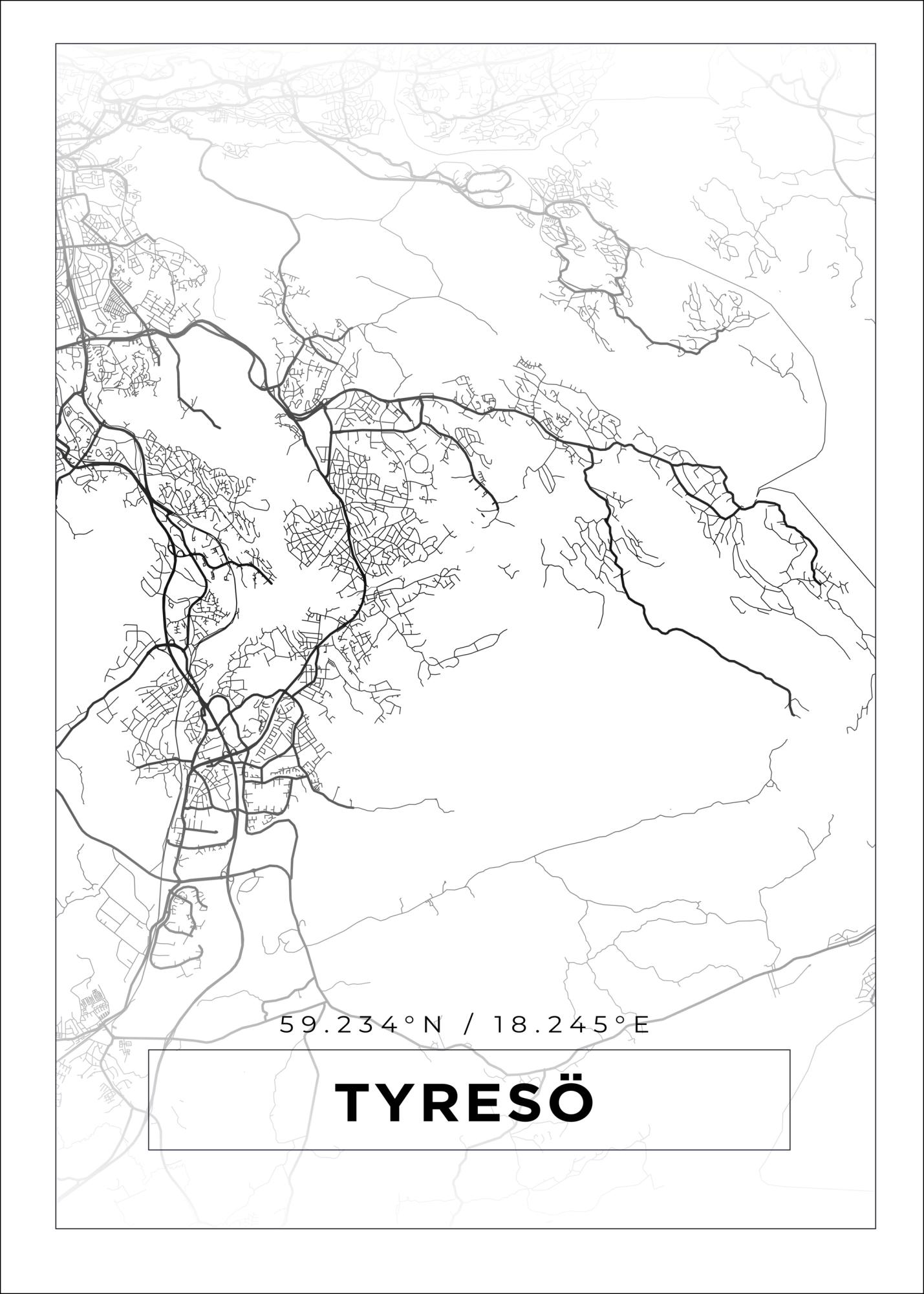Mapa - Tyresö - Cartaz Branco (21x29.7 cm (A4))