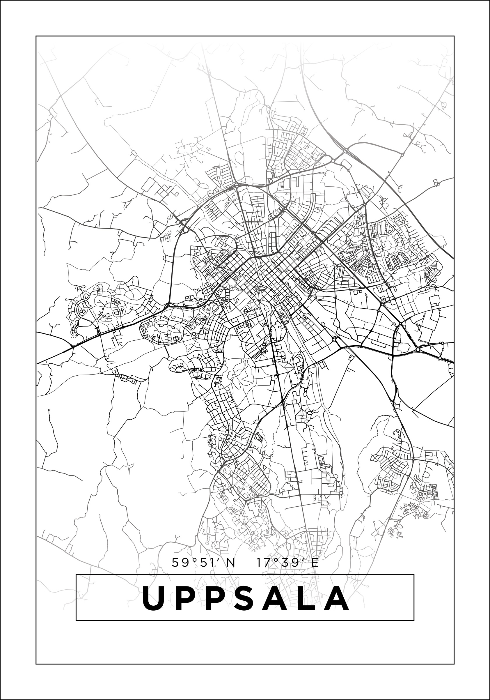 Mapa - Uppsala - Cartaz Branco (70x100 cm)