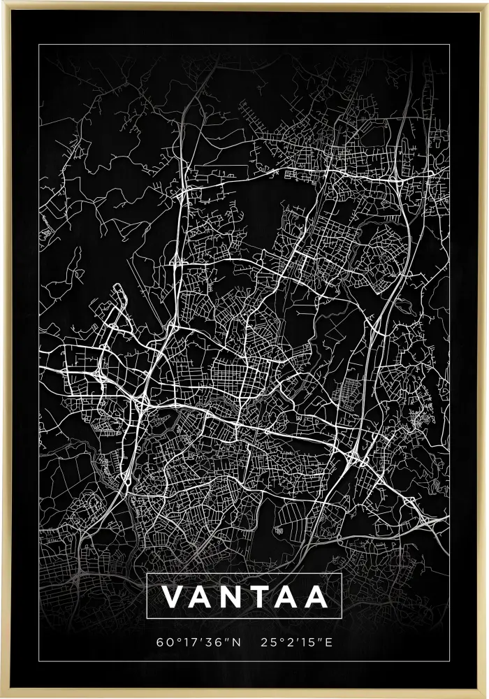 Mapa - Vantaa - Cartaz Preto (21x29.7 cm (A4))