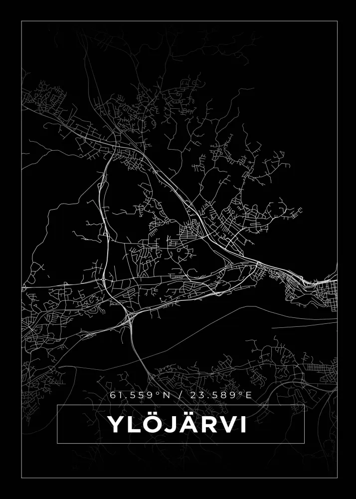 Mapa - Ylöjärvi - Cartaz Preto (21x29.7 cm (A4))