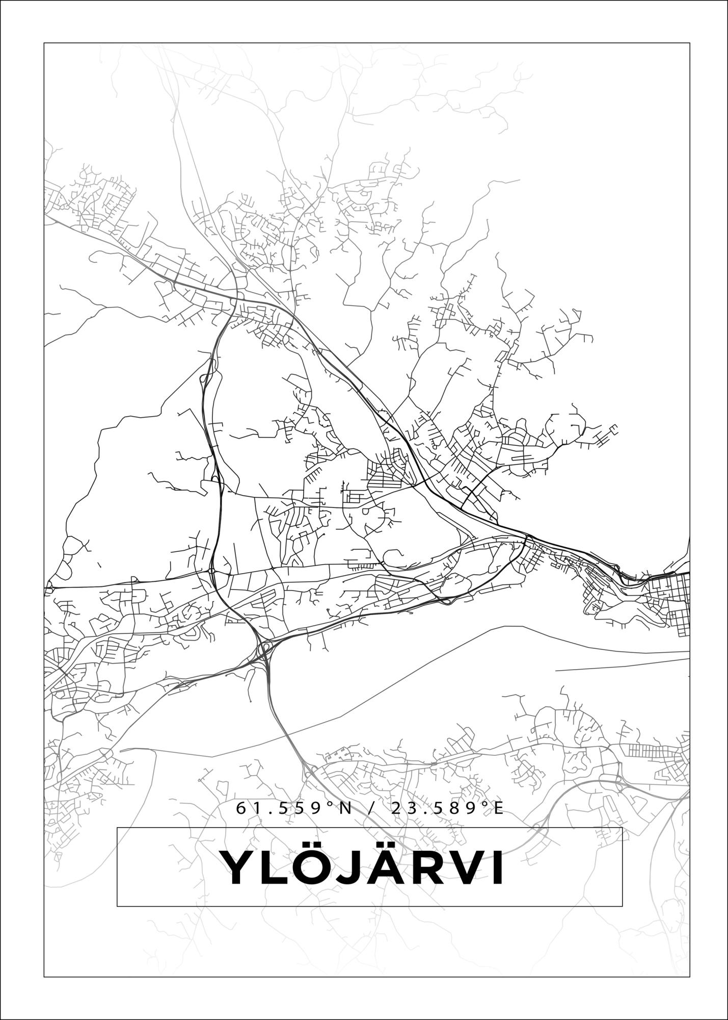 Mapa - Ylöjärvi - Cartaz Branco (21x29.7 cm (A4))