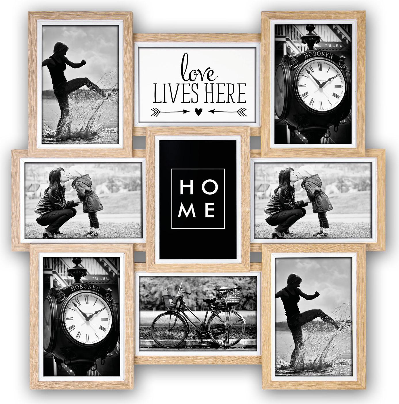 Com espaço para 9 fotos no tamanho 10x15 cm, esta elegante moldura de colagem em madeira é uma maneira perfeita de mostrar desde membros da família até momentos dignos de serem lembrados.
