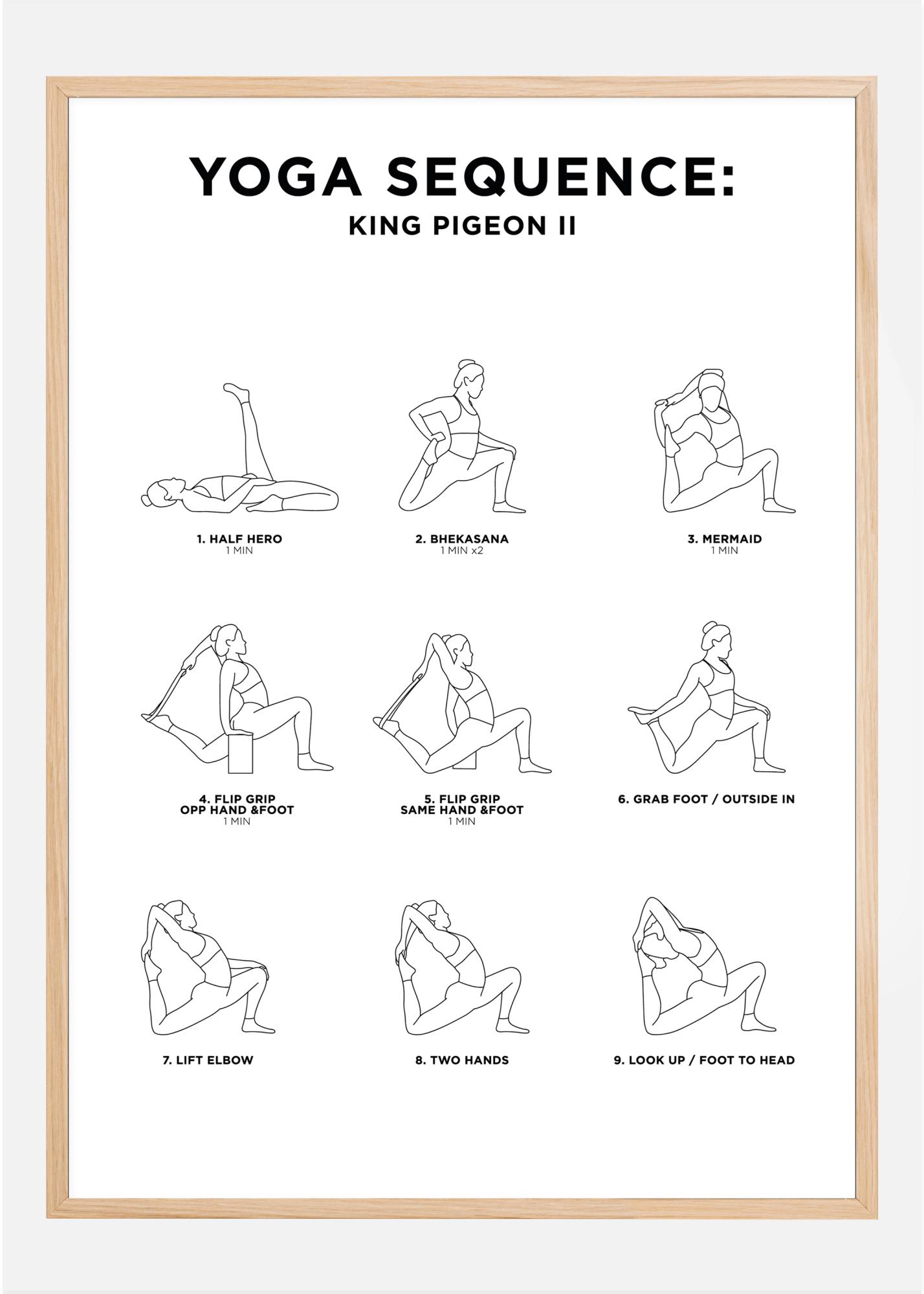 Pósteres trendy que podem ser combinados com outros motivos para criar uma parede de quadros na moda. O póster tem várias funções; além de ser um póster elegante e bonito para ter na parede, também serve como uma ajuda para quem quer aprender algumas das posições e sequências de yoga.