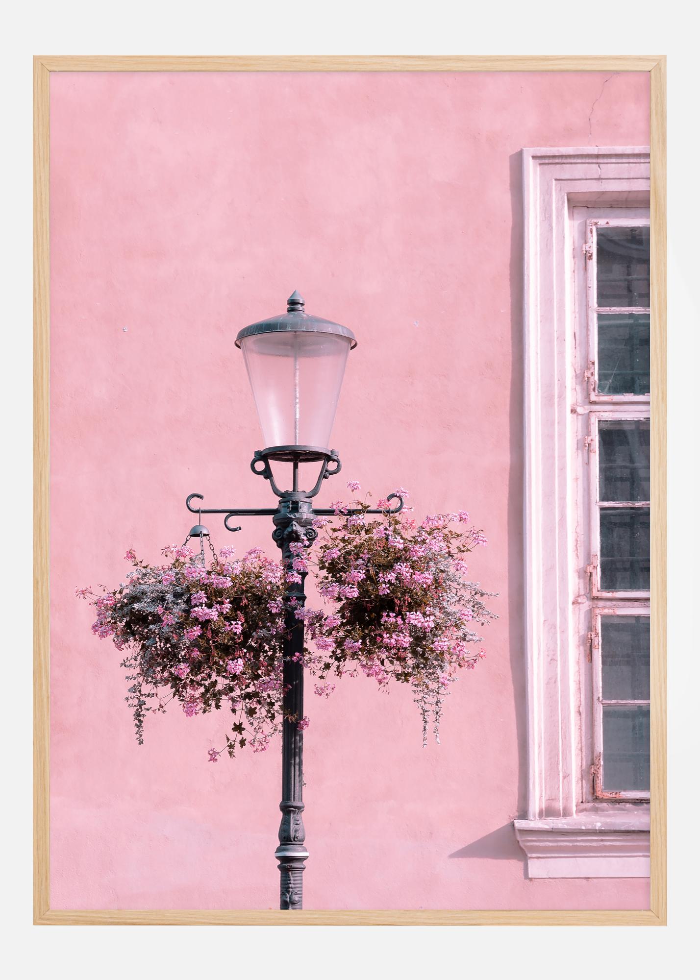 Este cartaz romântico retrata um poste de luz clássico adornado com caixas de flores florescentes, contra uma parede em rosa pastel. É uma imagem que evoca pensamentos de ruas urbanas idílicas e das simples belezas do dia a dia. Perfeito para quem deseja trazer um pedaço do charmoso centro da cidade para sua própria casa. Esta impressão iluminará qualquer lugar com seu charme suave e sensação vintage.