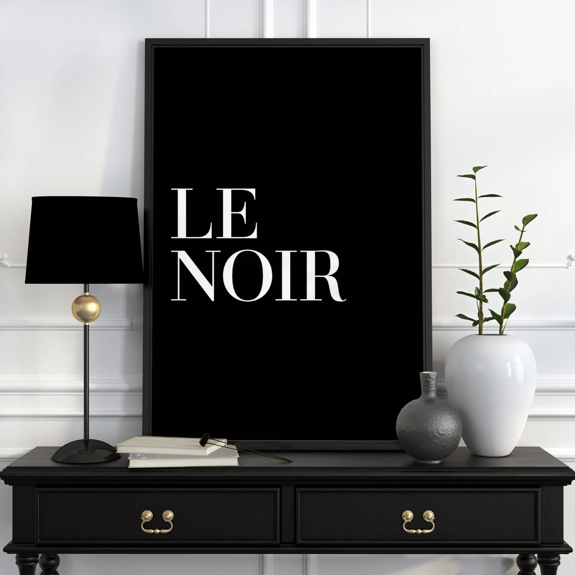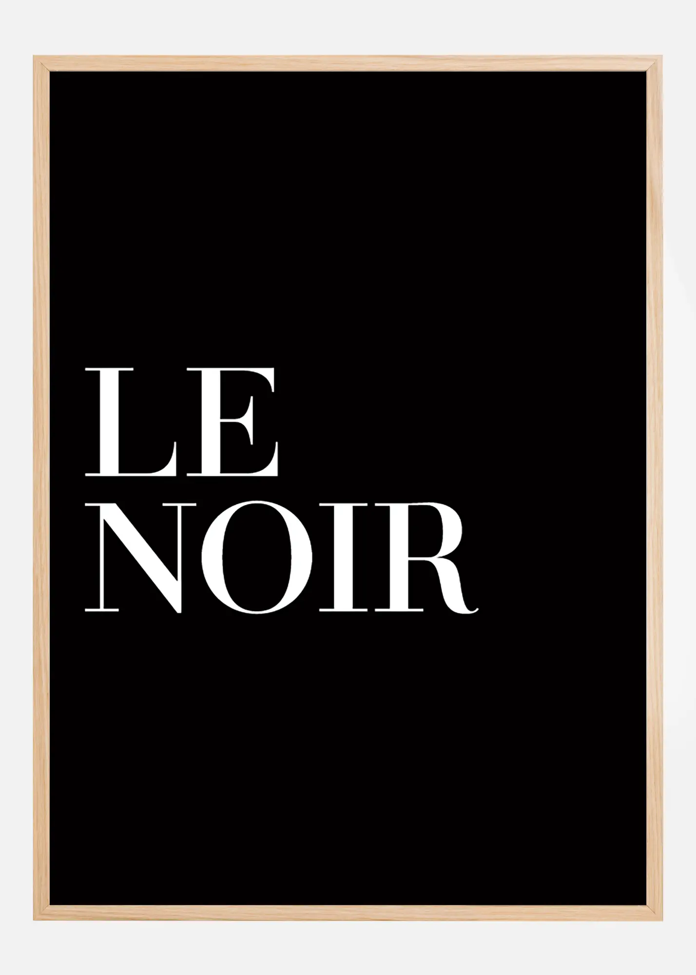 Um póster de texto simples e minimalista com a frase "Le Noir", O Preto, em letras brancas grandes num fundo preto. Um póster que combina perfeitamente numa galeria de parede maiores, talvez em combinação com o póster "Le Blanc", O Branco? Complemente com algo da nossa ampla variedade de molduras.
